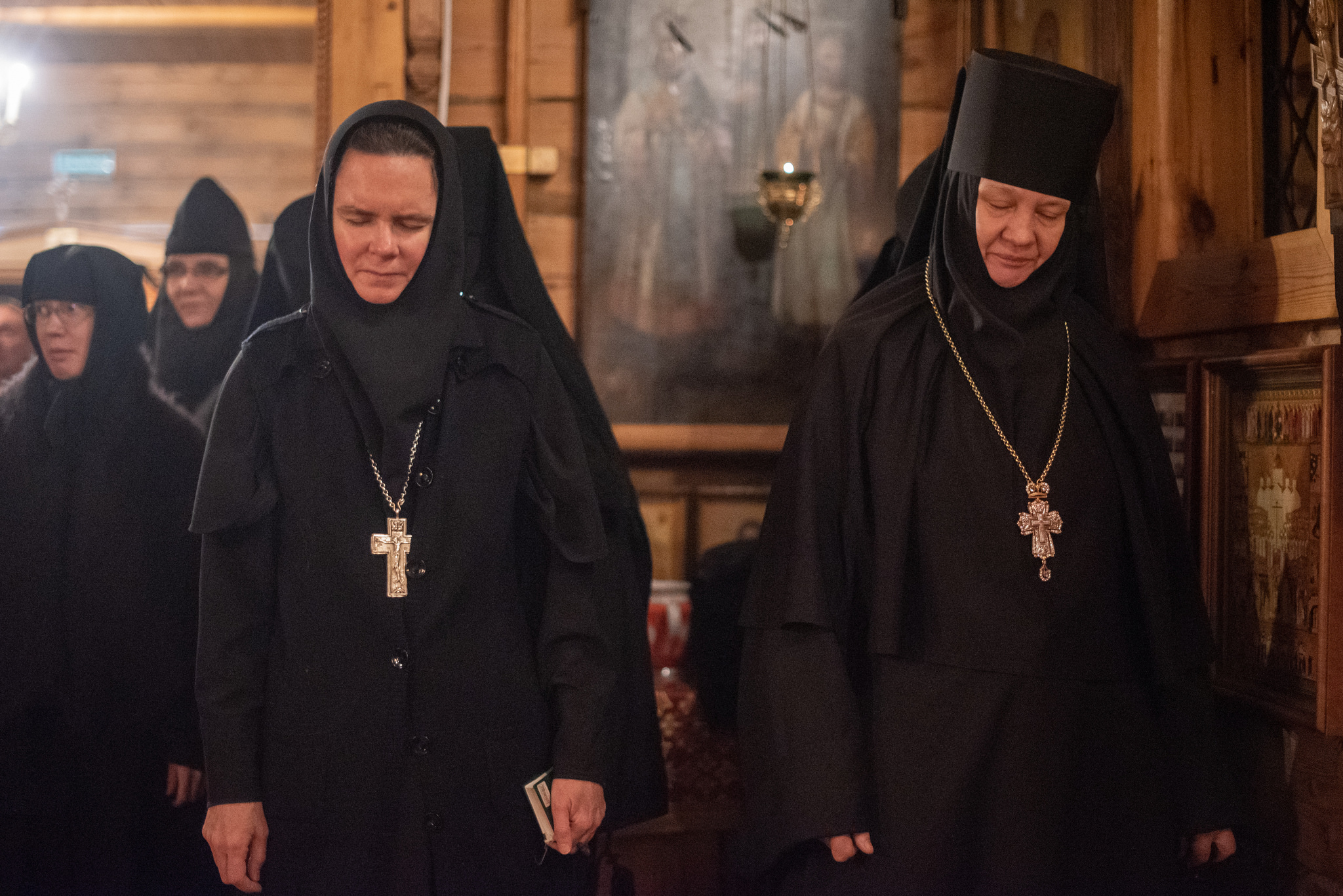 За службой молились: настоятельница Зачатьевского ставропигиального женского монастыря игуменья Иулиания (Каледа) с сёстрами; настоятельница Алексеевского ставропигиального женского монастыря игуменья Ксения (Чернега) с сёстрами; сёстры Иоанновского монастыря на Карповке.