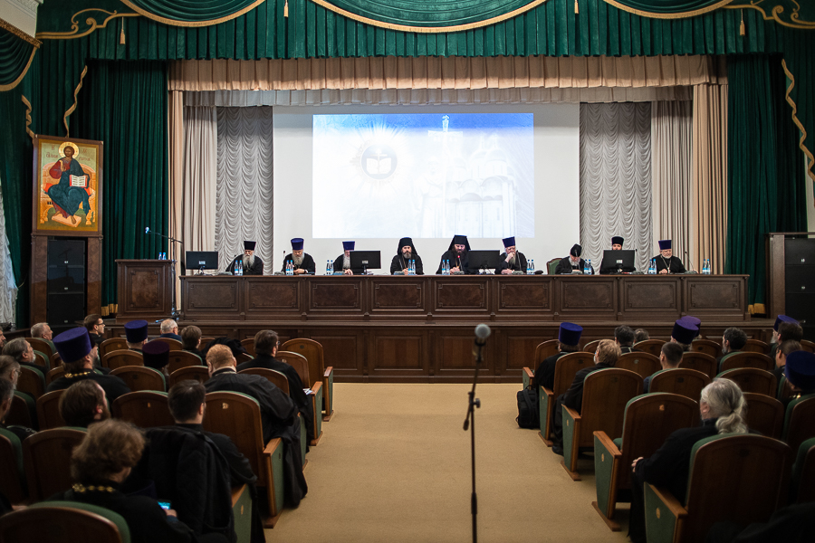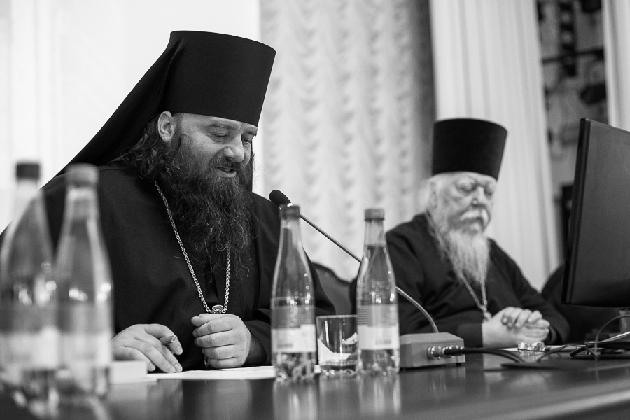 Основная часть мероприятия проходила в Актовом зале Московской духовной академии. С приветственным словом перед собравшимися выступил епископ Сергиево-Посадский Парамон.