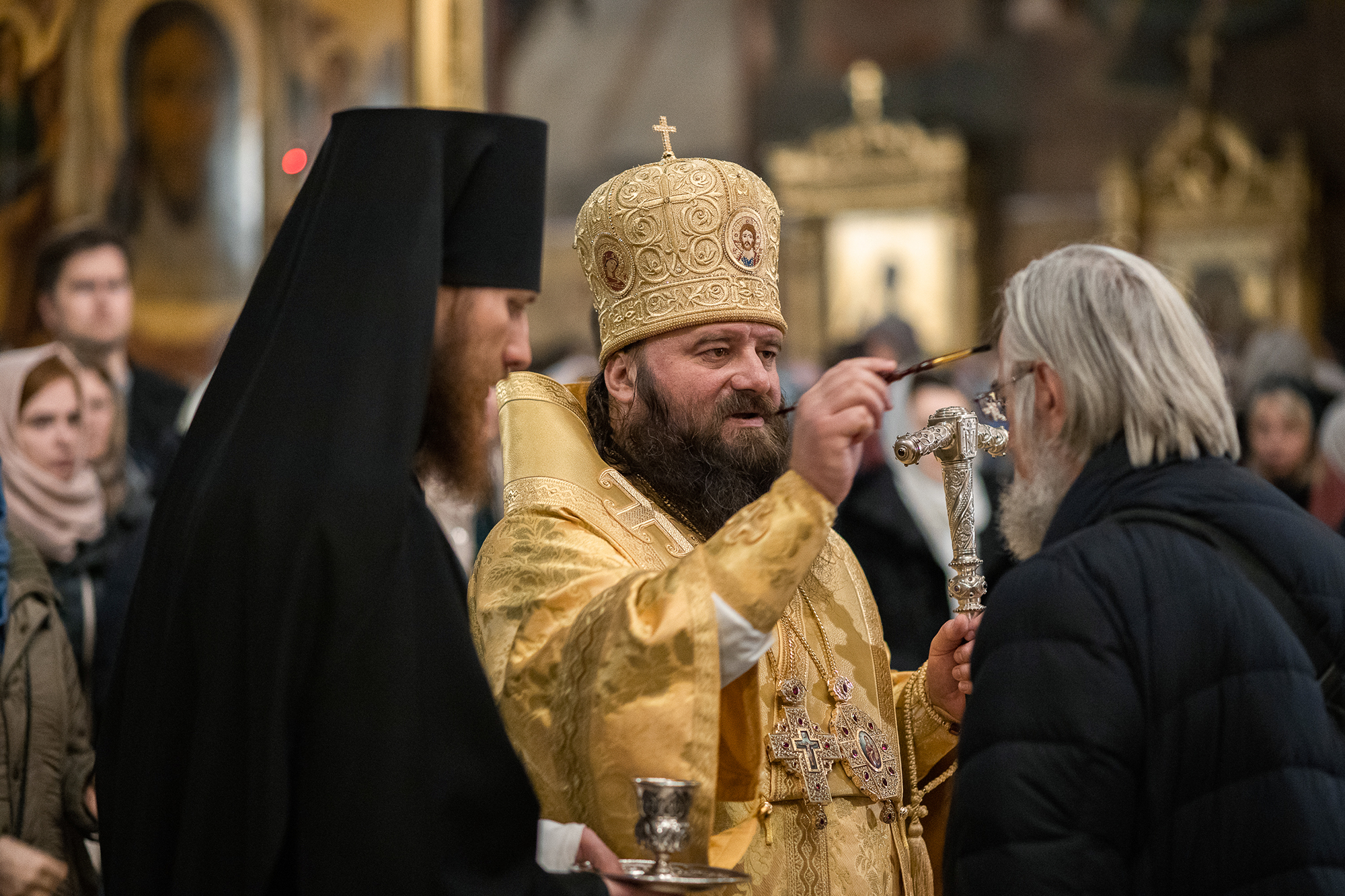 В вечер субботы епископ Сергиево-Посадский Парамон совершил всенощное бдение. А утром воскресного дня - позднюю Литургию в Успенском соборе Лавры. Наместнику сослужила братия обители в священном сане. Проповедь о евангельском чтении перед Причастием произнес насельник монастыря архимандрит Захария (Шкурихин).