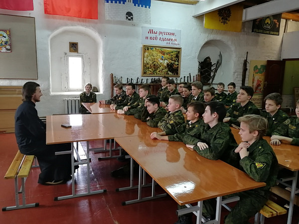 На занятиях по Закону Божиему была продолжена тема, начатая в храме на проповеди и посвященная евангельскому чтению этого воскресного дня – притче о блудном сыне. Курсанты поговорили о Неделях, готовящих христиан к началу Великого поста, обсудили на примере притчи Божие милосердие и значение раскаяния и в беседе о таинствах Православной Церкви особое внимание уделили таинству Покаяния.