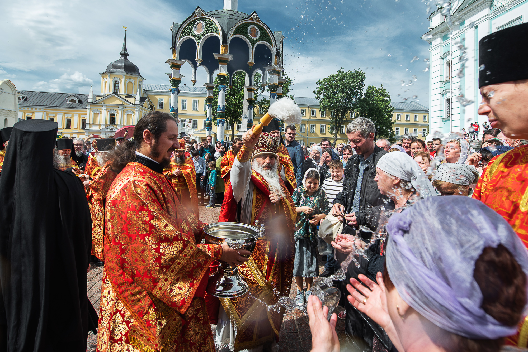 После окончания Литургии архимандрит Агафодор совершил водосвятный молебен у Надкладезной часовни рядом с Успенским собором.