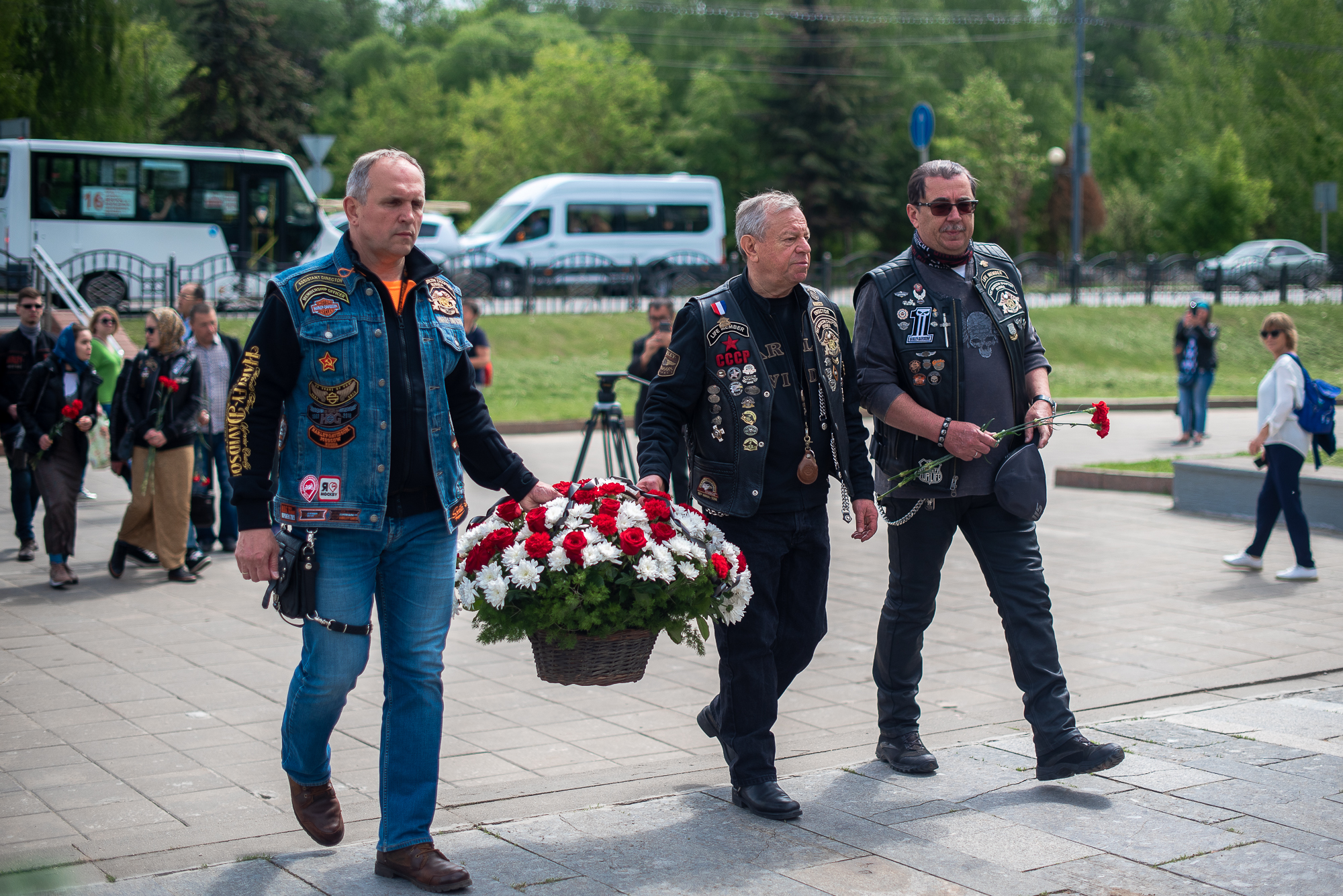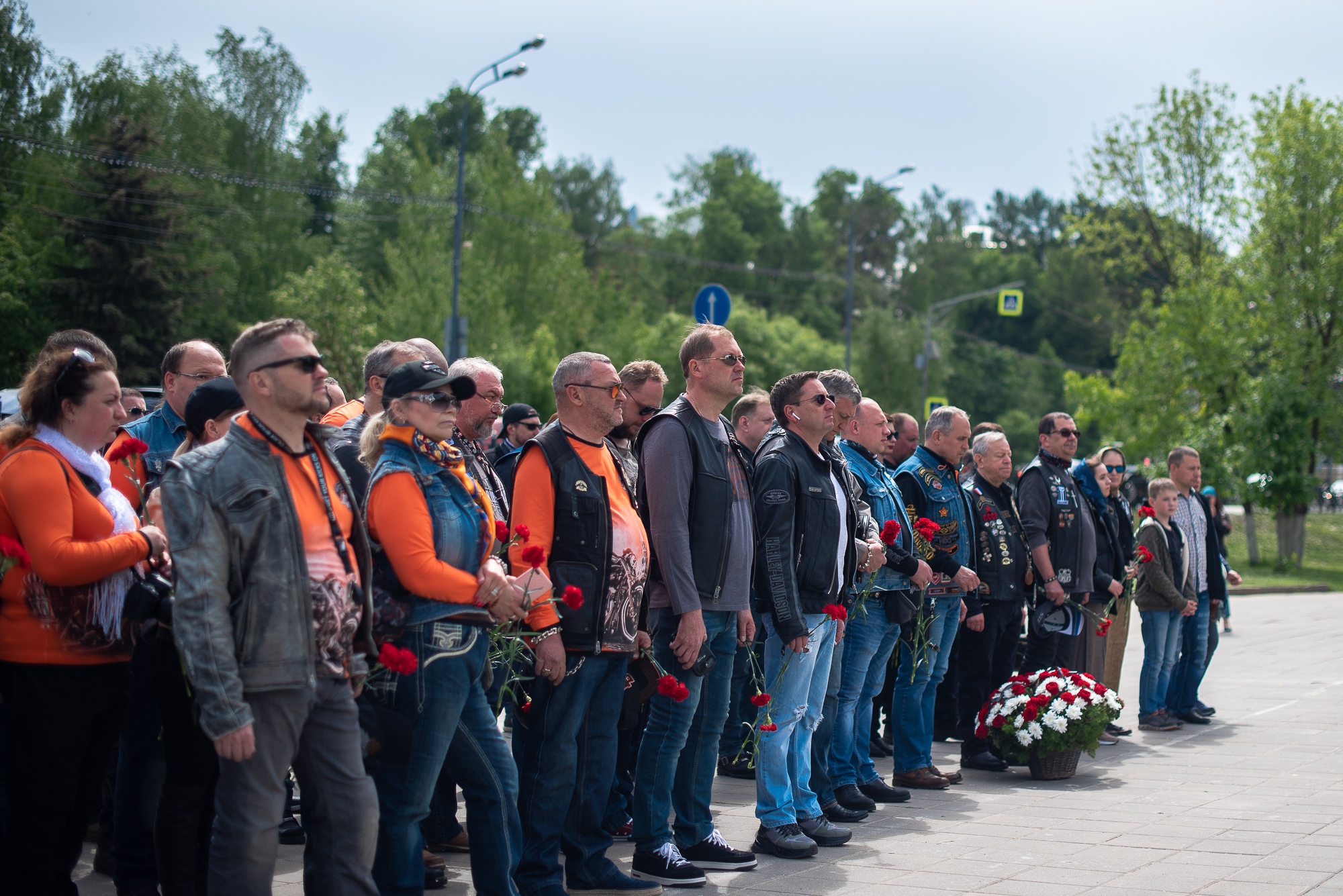 Также к присутствующим обратился директор первого московского отделения «Harley Owners Group» Семен Нудельман, который напомнил о масштабе Великой Отечественной войны. Директор сказал, что беда не обошла ни одну семью, и призвал почтить память погибших. Затем ведущий объявил «Минуту молчания», после чего все собравшиеся возложили цветы.