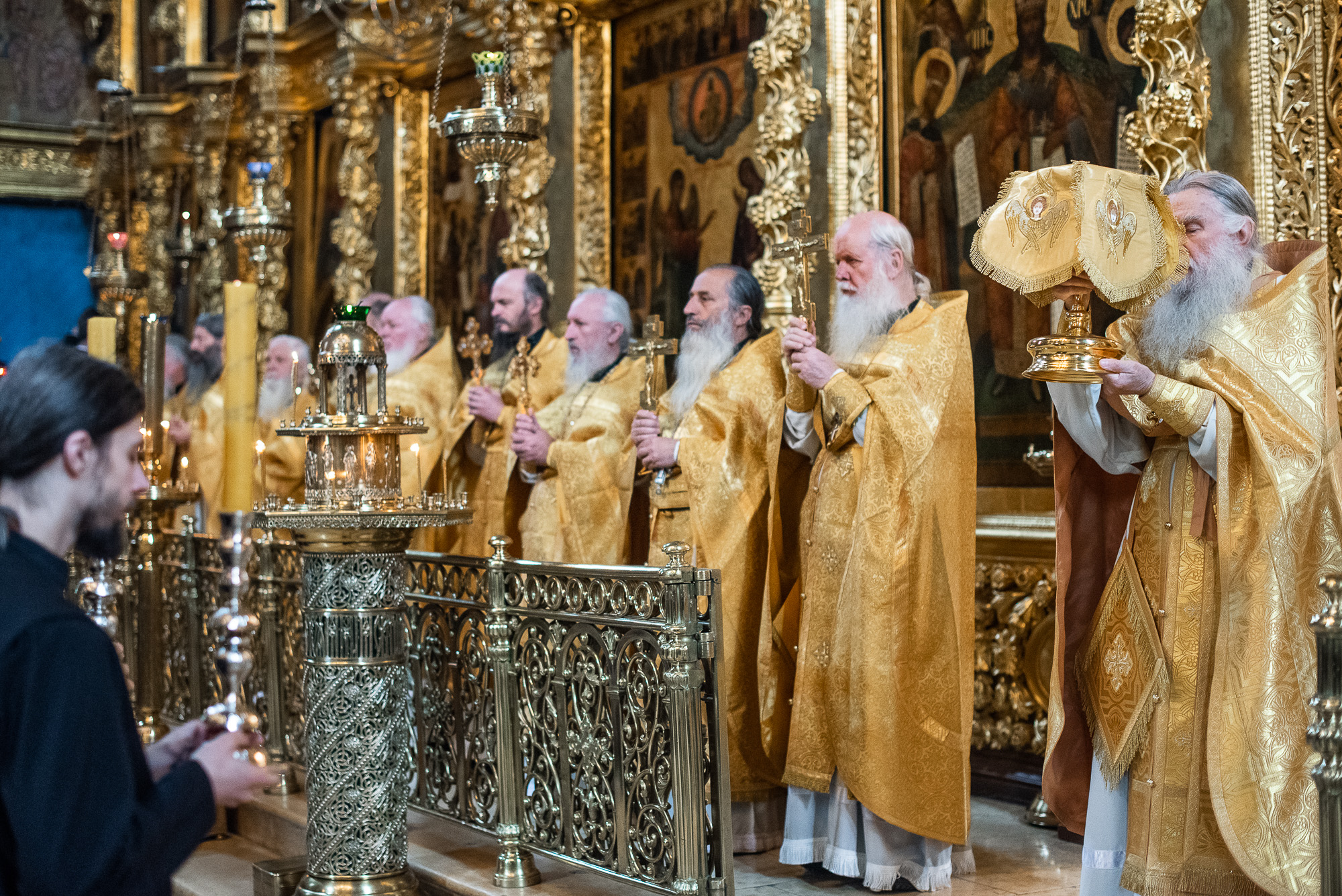 На ранней Литургии в Успенском соборе пел третий академический хор под управлением чтеца Серафима Мороза.