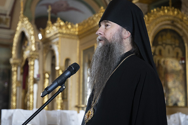 Преосвященный владыка обратился ко всем присутствующим с архипастырским словом по случаю праздника Светлого Христова Воскресения и вручил памятные подарки.