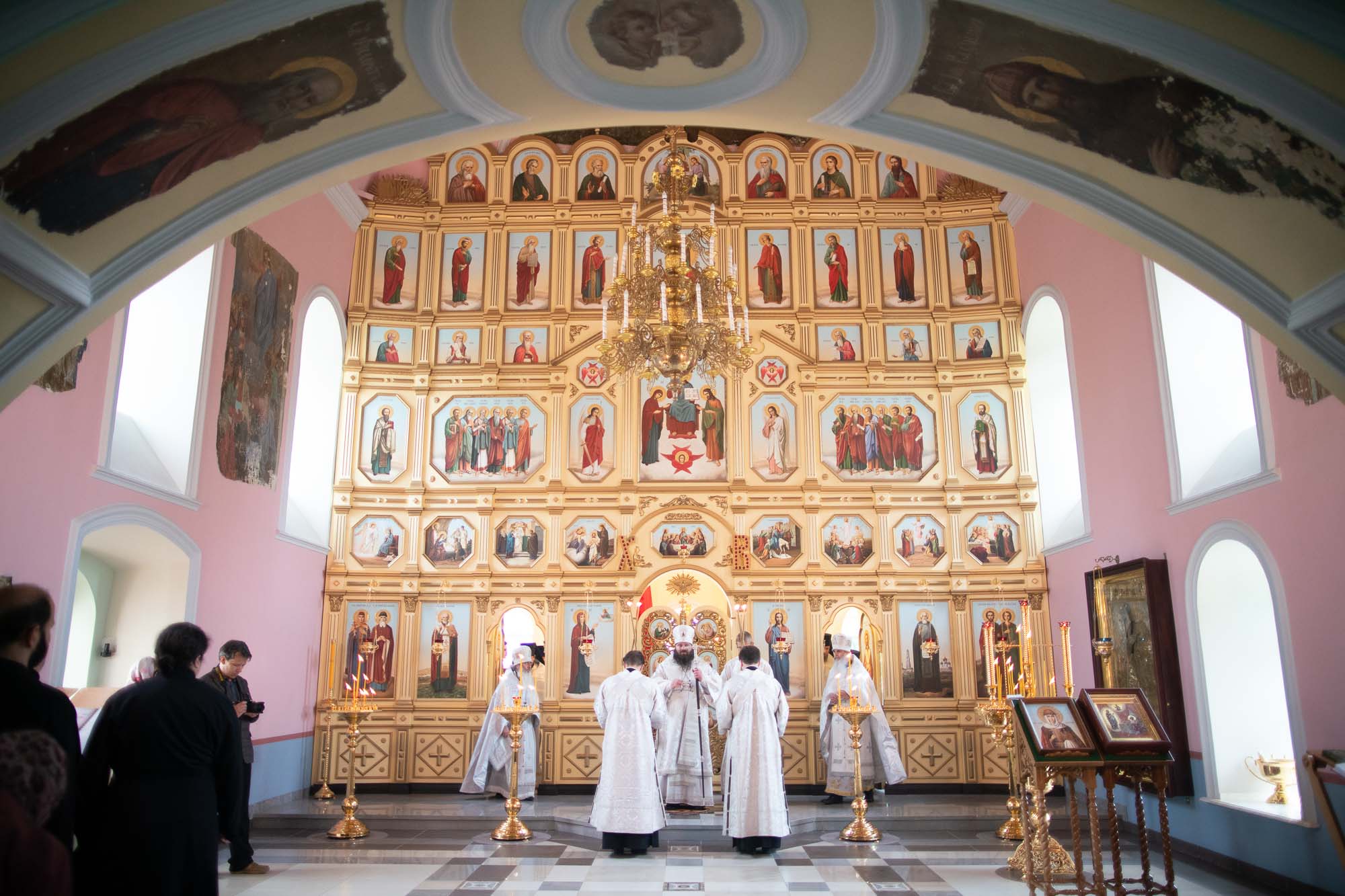 После освящения храма состоялась Литургия, на которой епископу Парамону сослужили настоятель Гефсиманского скита архимандрит Дамиан и братия обители. По окончании богослужения владыка наместник поздравил молящихся с освящением нового храма и обратился к ним с архипастырским словом.