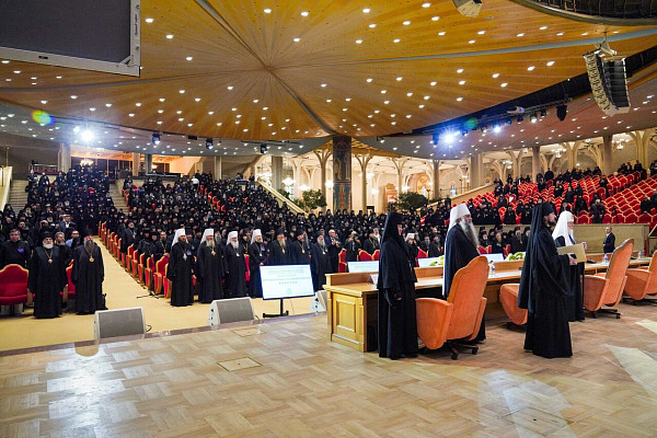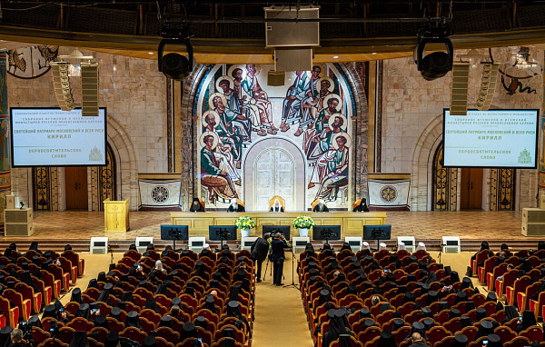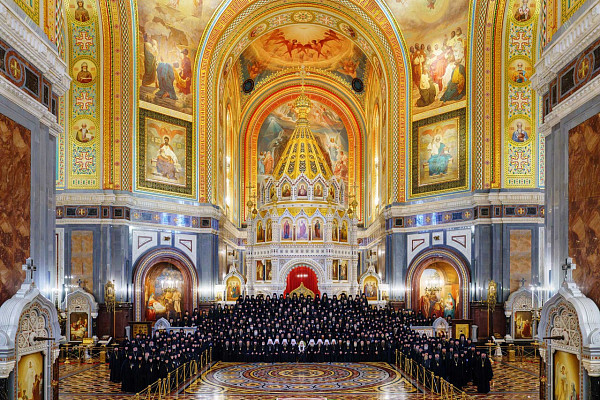 Перед началом заседания в нижней Преображенской церкви Храма Христа Спасителя была отслужена Литургия, за которой молились участники собрания.