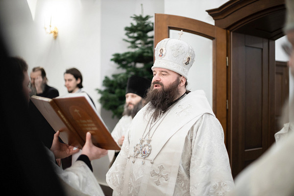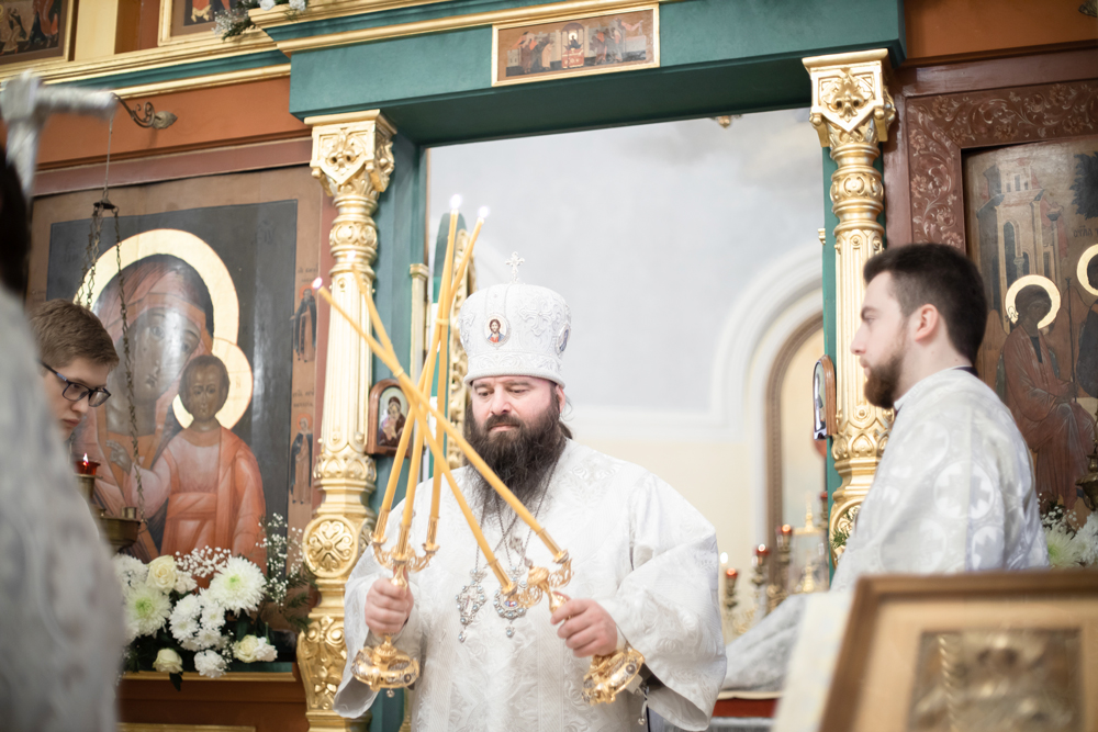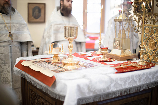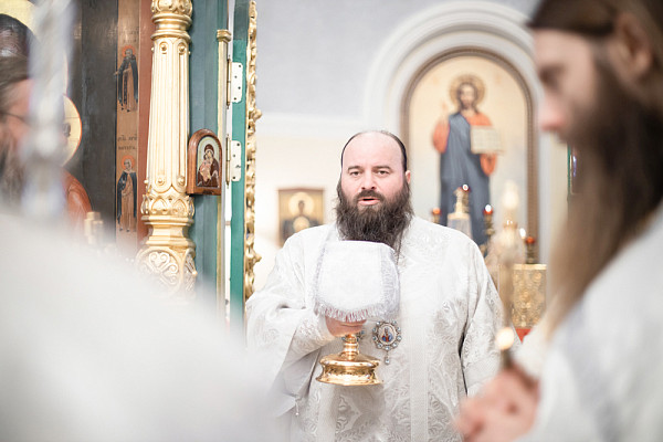 Во время причащения духовенства иеромонах Кассиан (Плоский) произнес проповедь про Собор Пресвятой Богородицы и отметил, что через этот праздник Церковь научает нас почитать родителей и старших.