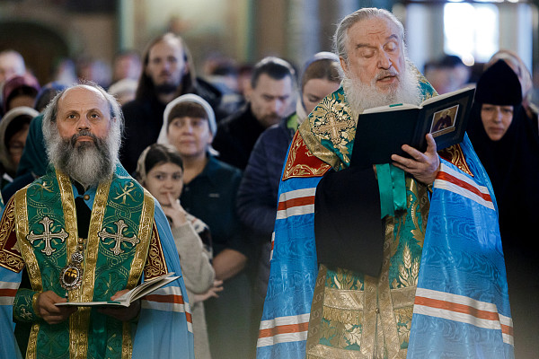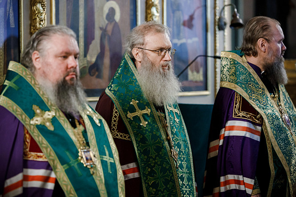 В Трапезном храме акафист возглавил митрополит Тобольский и Тюменский Димитрий в сослужении: