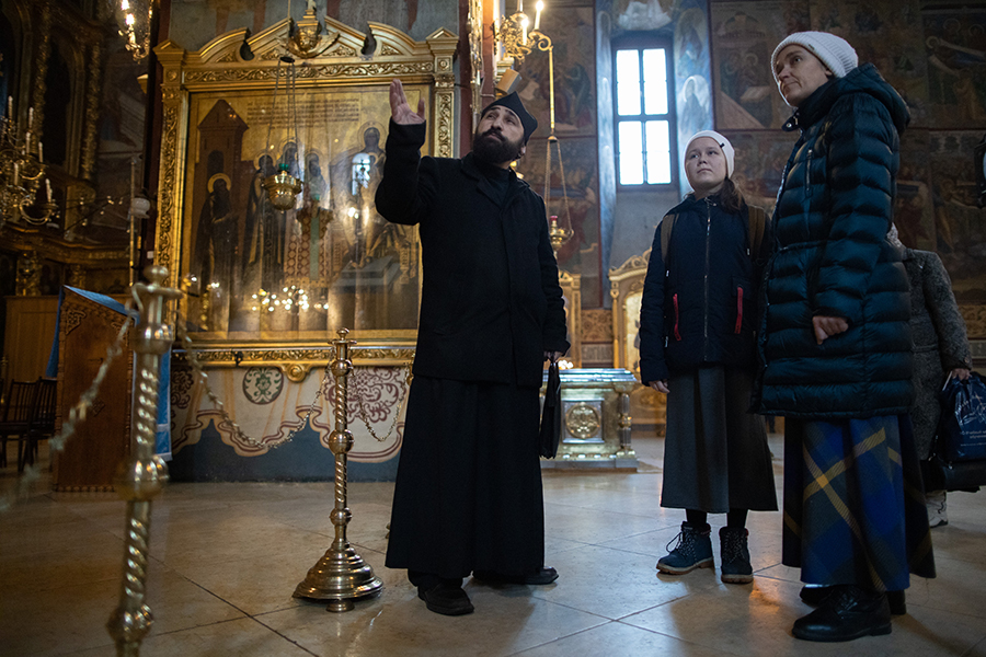 Для победительницы и сопровождавшей ее учительницы Ольги Беренс Лавра организовала перелет, трехдневное проживание и расширенную экскурсию по монастырю. Экскурсию проводил старший экскурсовод Паломнического центра Лавры иеродиакон Георгий (Рамазян).