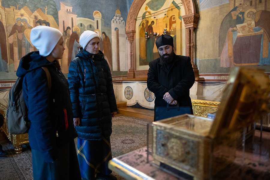 Гости посетили основные храмы Лавры, поклонились мощам преподобного Сергия Радонежского в Троицком соборе, поднялись на колокольню. В конце экскурсии посмотрели винный погреб Лавры, созданный в XVI в. при Иване Грозном.