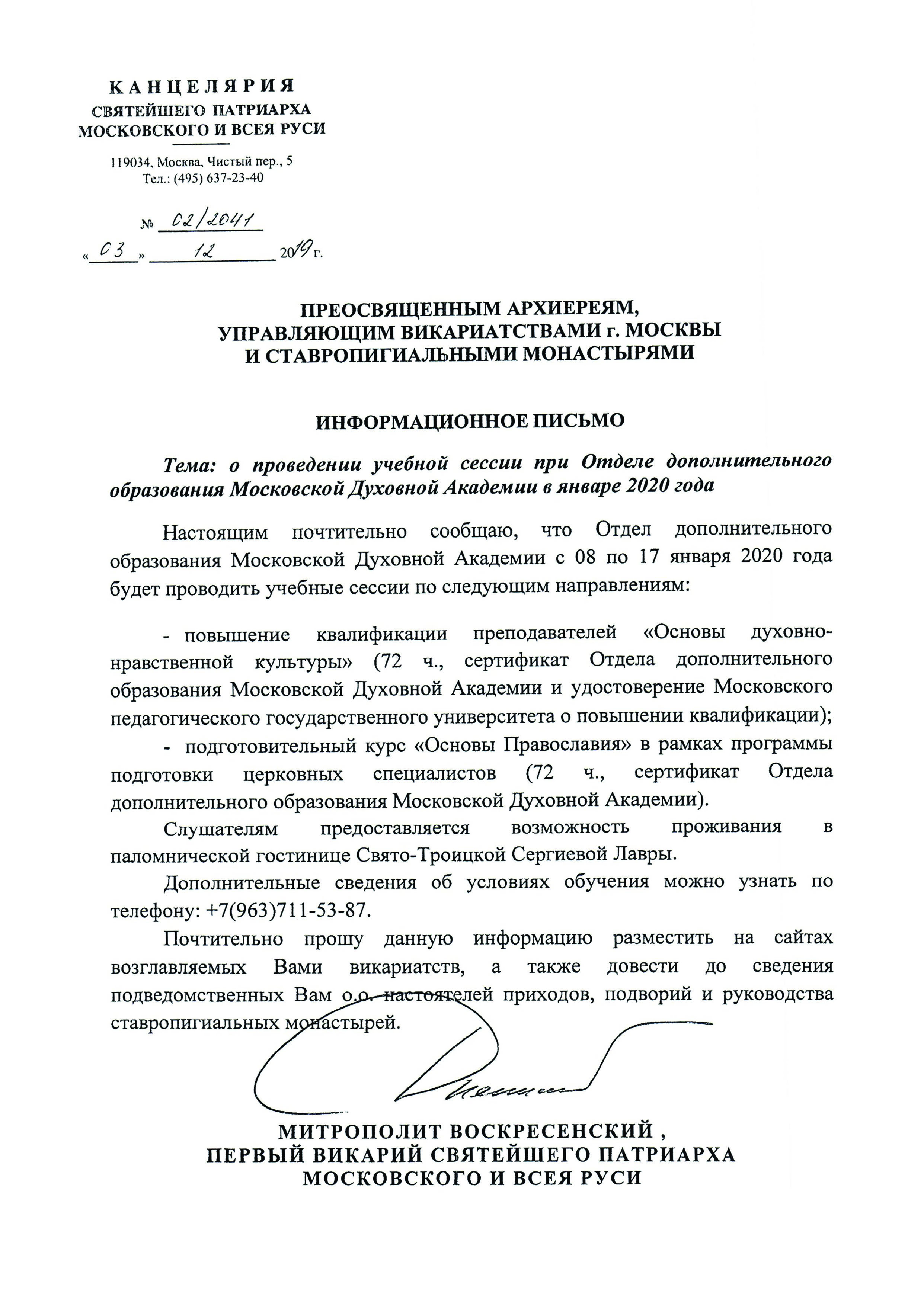 При отделе дополнительного образования МДА пройдет учебная сессия