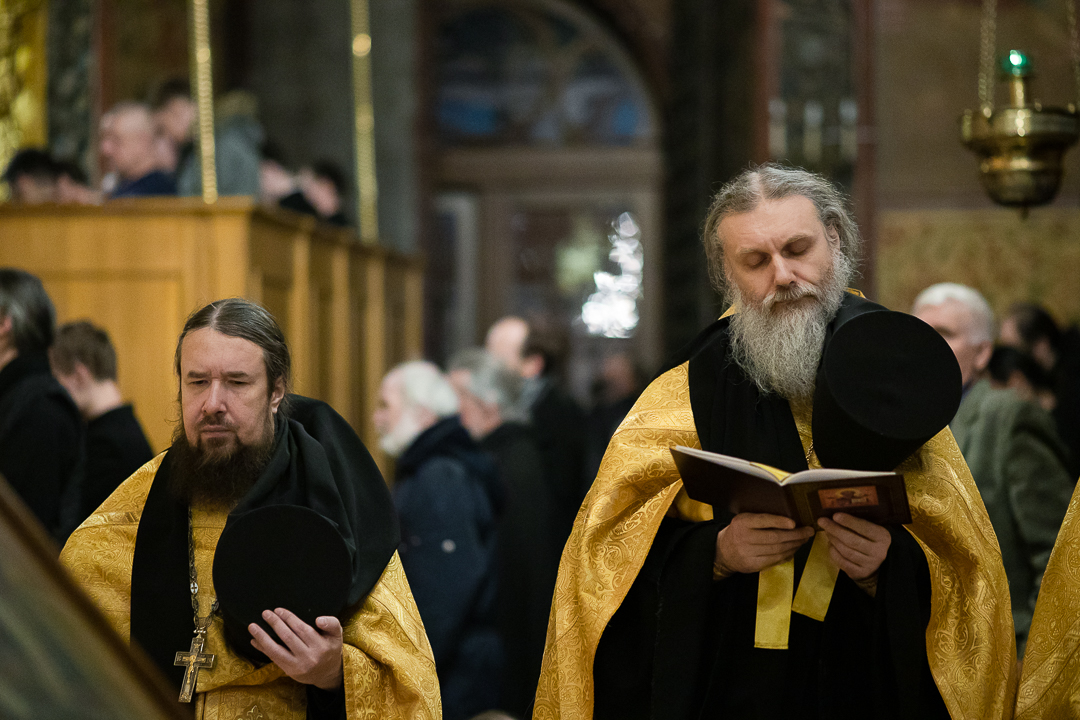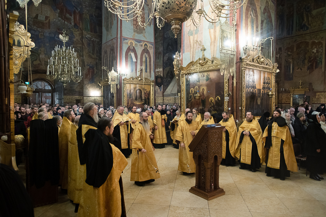 На вечернем богослужении пели братский хор Лавры под управлением Луки Масленникова и третий академический хор под управлением Серафима Мороза.