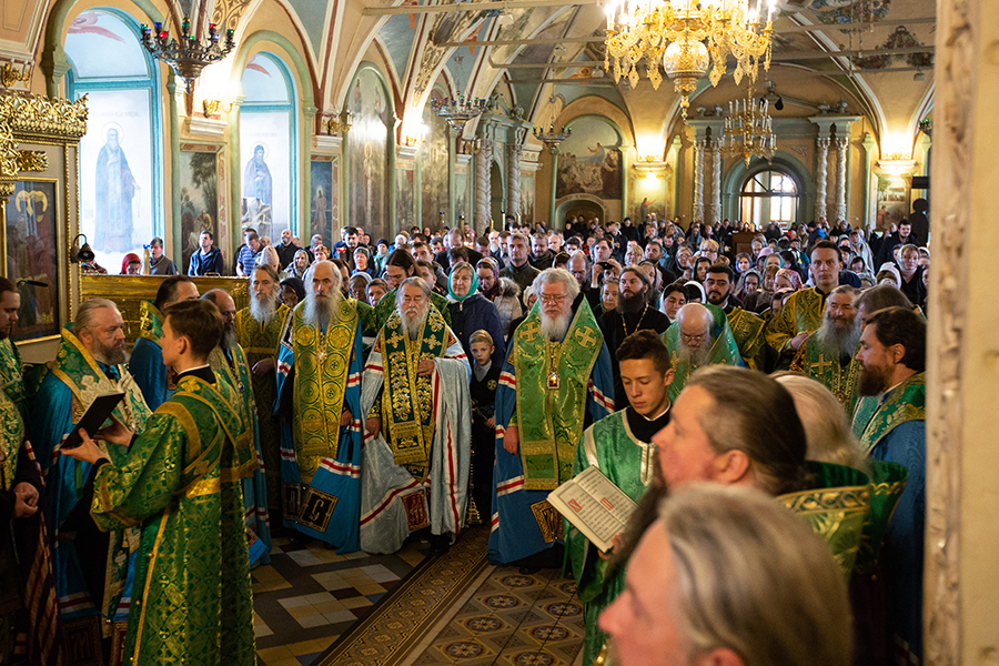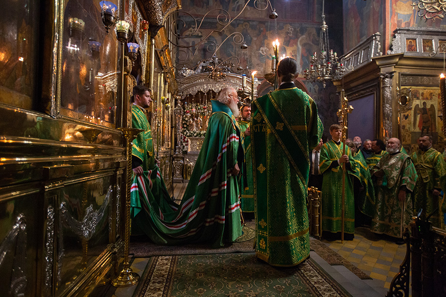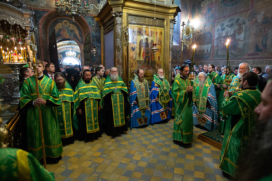 Богослужения в Троицком соборе Лавры совершил Святейший Патриарх Московский и всея Руси Кирилл.