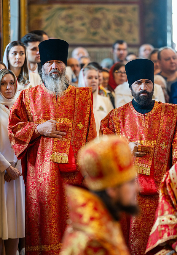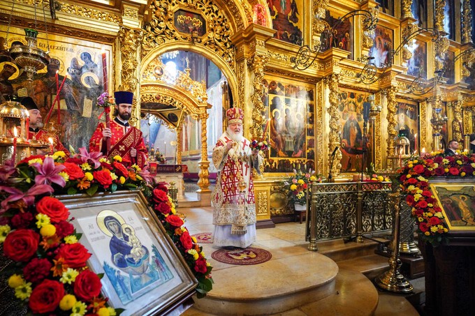 В Успенском соборе Предстоятель Русской Православной Церкви возглавил служение Божественной литургии. Его Святейшеству сослужил наместник обители епископ Сергиево-Посадский и Дмитровский Кирилл, преосвященные архипастыри, насельники Лавры и духовенство г. Москвы.