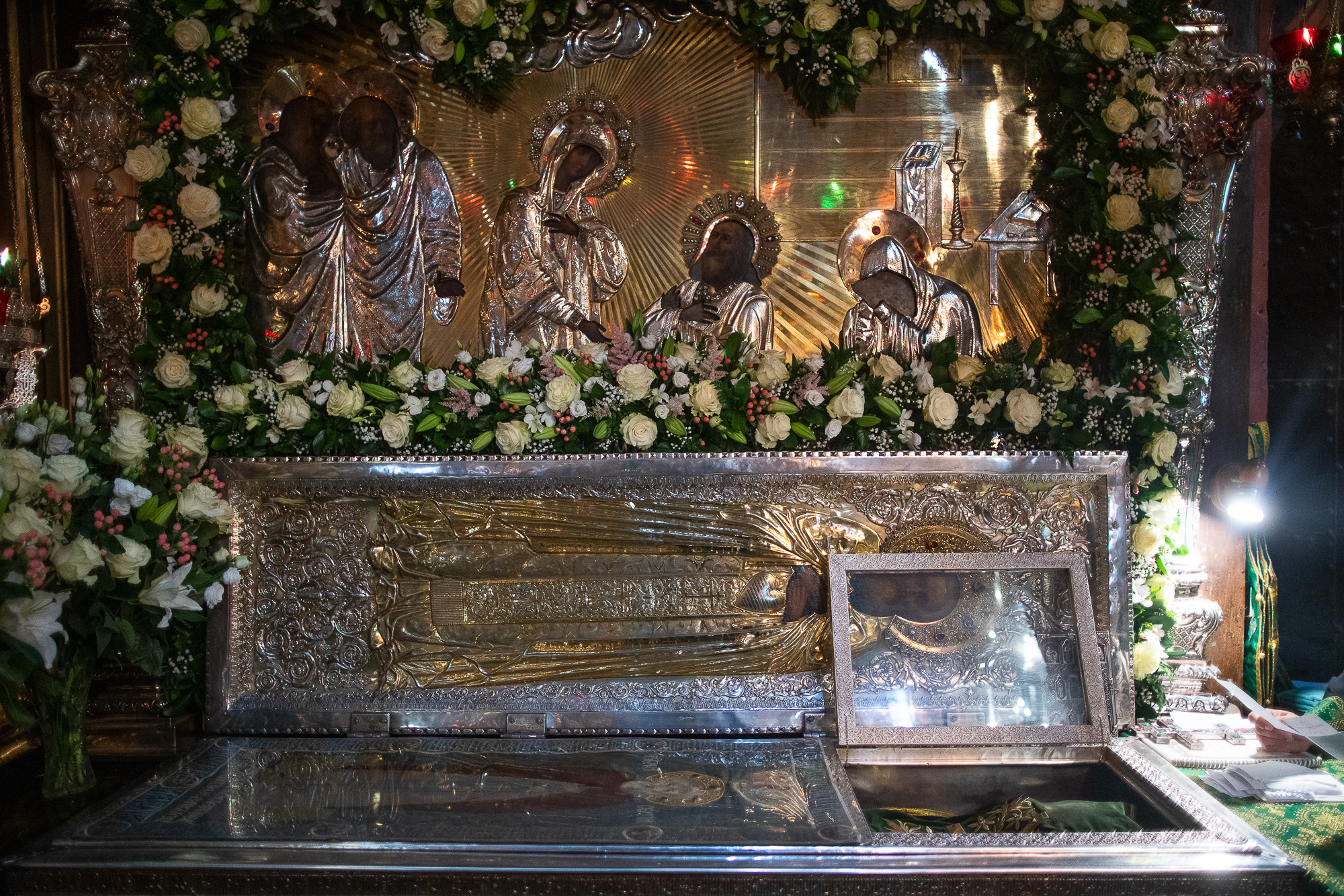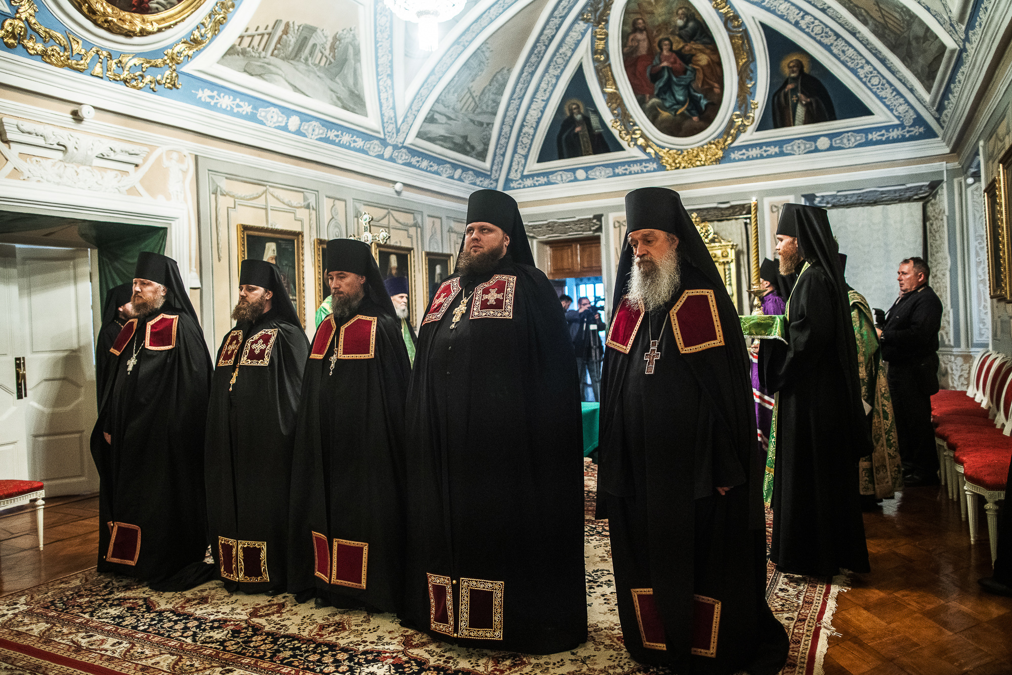 Всенощное бдение в Успенском соборе возглавил предстоятель Украинской Православной Церкви митрополит Киевский и всея Украины Онуфрий. Ему сослужили: митрополит Санкт-Петербургский и Ладожский Варсонофий, управляющий делами Московской Патриархии митрополит Тверской и Кашинский Савва, митрополит Калужский и Боровский Климент, митрополит Ярославский и Ростовский Пантелеимон, митрополит Самарский и Тольяттинский Сергий, митрополит Тернопольский и Кременецкий Сергий, митрополит Таллинский и всея Эстонии Евгений, митрополит Ростовский и Новочеркасский Меркурий, митрополит Тамбовский и Рассказовский Феодосий, митрополит Нижегородский и Арзамасский Георгий, митрополит Рязанский и Михайловский Марк, митрополит Сингапурский и Юго-Восточно-Азиатский Сергий, митрополит Саранский и Мордовский Зиновий, митрополит Ханты-Мансийский и Сургутский Павел, митрополит Вологодский и Кирилловский Игнатий, митрополит Смоленский и Дорогобужский Исидор, архиепископ Витебский и Оршанский Димитрий, архиепископ Каширский Феогност, архиепископ Салехардский и Ново-Уренгойский Николай, архиепископ Горноалтайский и Чемальский Каллистрат, епископ Орехово-Зуевский Пантелеимон, епископ Россошанский и Острогожский Андрей, епископ Ардатовский и Атяшевский Вениамин, епископ Воскресенский Дионисий, епископ Балашихинский Николай, епископ Амурский и Чегдомынский Николай, епископ Муромский и Вязниковский Нил, епископ Мичуринский и Моршанский Гермоген, епископ Бийский и Белокурихинский Серафим, епископ Павлово-Посадский Фома, епископ Зеленоградский Савва, епископ Клинский Стефан, епископ Солнечногорский Алексий, духовенство и братия Лавры в священном сане.