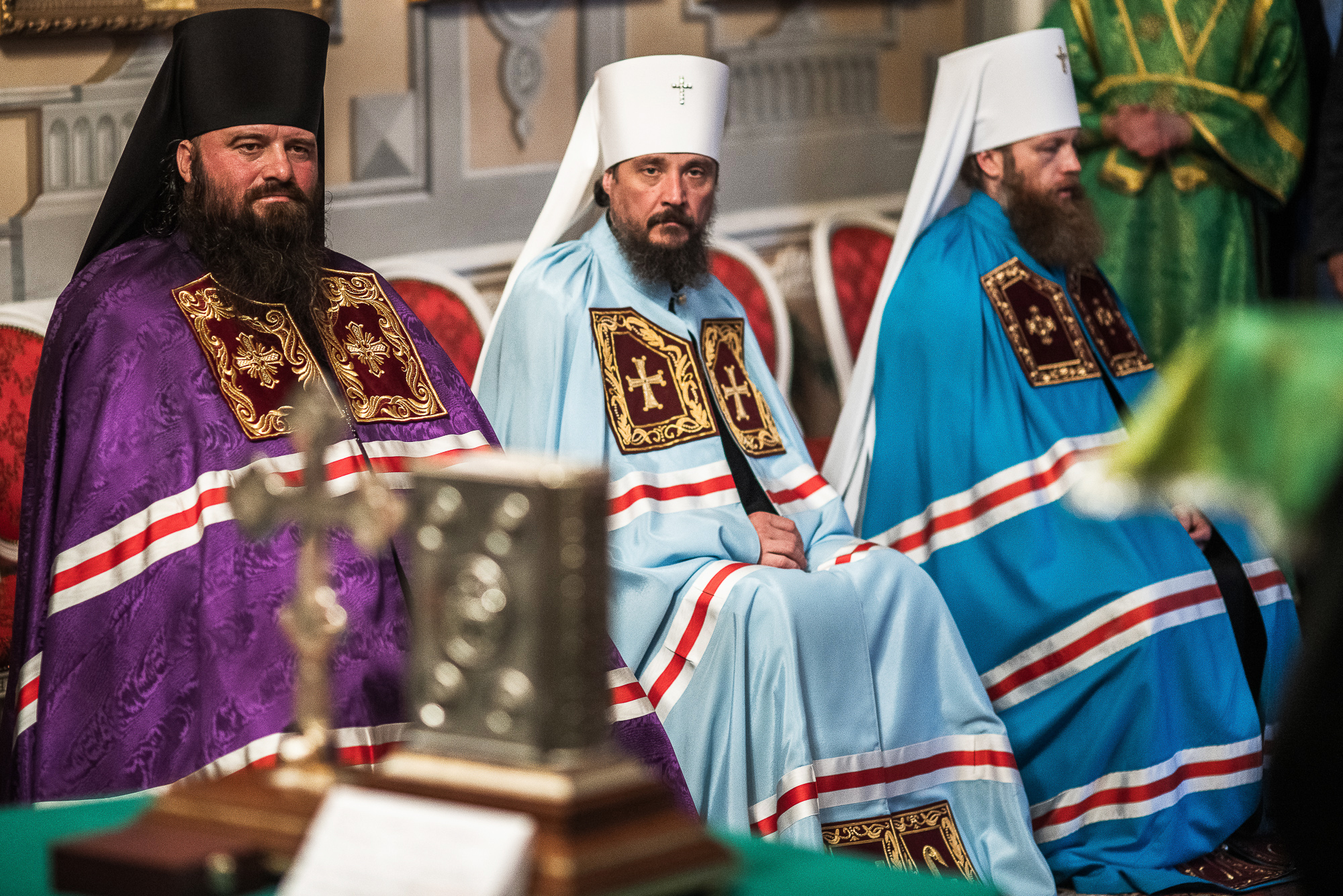 Богослужение в Трапезном храме преподобного Сергия Радонежского возглавил митрополит Крутицкий и Коломенский Ювеналий. Ему сослужили митрополит Омский и Таврический Владимир, митрополит Иваново-Вознесенский и Вичугский Иосиф, митрополит Брянский и Севский Александр, митрополит Архангельский и Холмогорский Даниил, митрополит Орловский и Болховский Тихон, митрополит Барнаульский и Алтайский Сергий, архиепископ Абаканский и Хакасский Ионафан, епископ Видновский Тихон, епископ Канашский и Янтиковский Стефан, епископ Карасукский и Ордынский Филипп, епископ Каинский и Барабинский Феодосий, епископ Альметьевский и Бугульминский Мефодий, епископ Зарайский Константин, епископ Сердобский и Спасский Митрофан, епископ Калачевский и Палласовский Иоанн, епископ Борисоглебский и Бутурлиновский Сергий, епископ Луховицкий Петр, епископ Златоустовский и Саткинский Викентий.