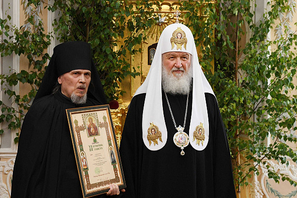 16 июня 2019 года, в праздник Святой Троицы, по окончании Божественной литургии в Свято-Троицкой Сергиевой Лавре, в Тронном зале Патриарших покоев обители Святейший Патриарх Московский и всея Руси Кирилл вручил церковные награды насельникам Лавры, отмечающим памятные даты в текущем году.