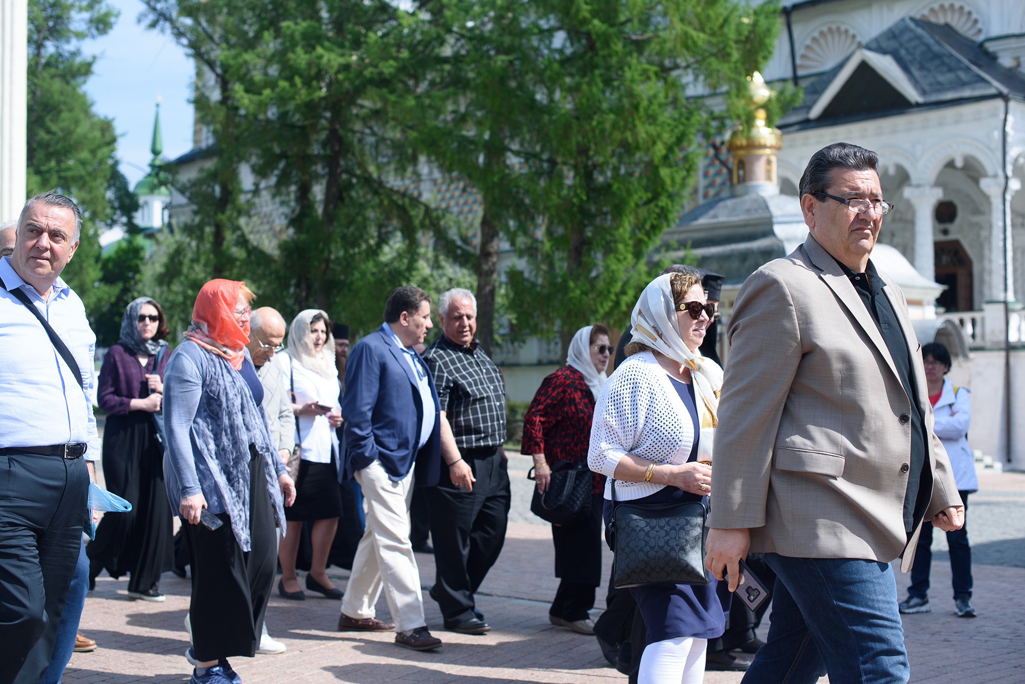 В рамках визита гостям провели экскурсию по обители, во время которой делегация поклонилась мощам преподобного Сергия Радонежского в Троицком соборе.