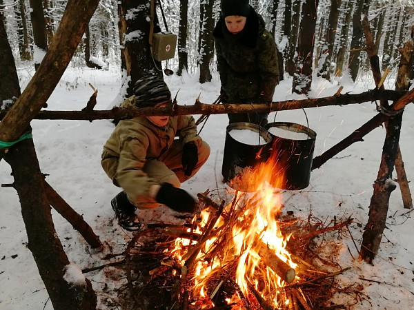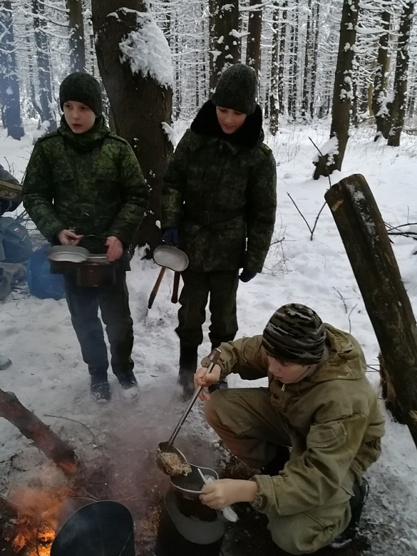 23 декабря 2018 года курсанты Центра «Пересвет» изучали топографические особенности местности проведения зимнего похода, готовили на костре гречневую кашу и беседовали о смысле крестного знамения.