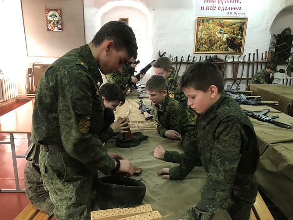 У 2-го взвода учебный день начался со строевой и физподготовки. 1-й взвод тоже размялся в спортзале, а затем получил задание подготовить учебные точки для младших и провести у них занятия по сборке-разборке АК-74, снаряжению магазина и команде «изготовка к бою».
