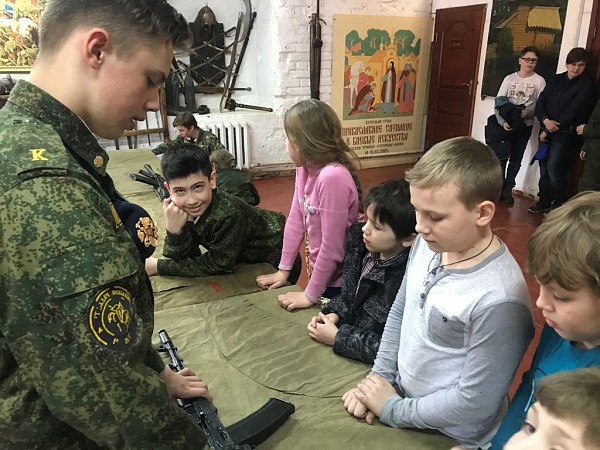 Вернувшись с экскурсии, воспитанники воскресной школы и приехавшие с ними родители познакомились с «Пересветом» – курсантами и инструкторами, а также учебными классами, спортзалом, библиотекой. На вопрос, не хотят ли они присоединиться к занятиям, дети ответили редким энтузиазмом и с ним же приступили к изучению устройства автомата.