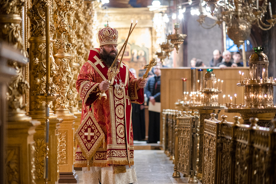 Божественную литургию в Успенском соборе Лавры совершил епископ Парамон в сослужении братии обители в священном сане и духовенства Северного викариатства.