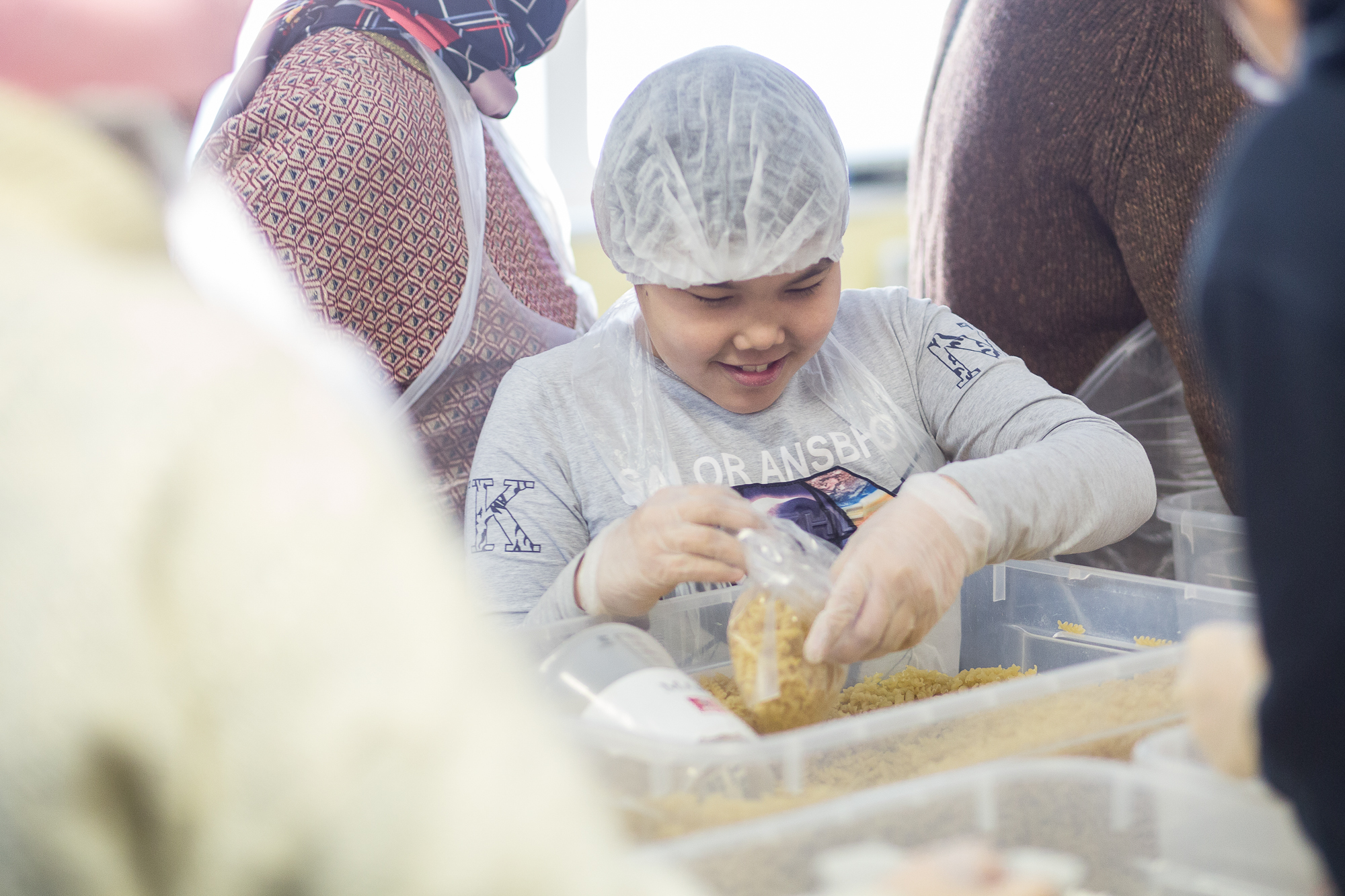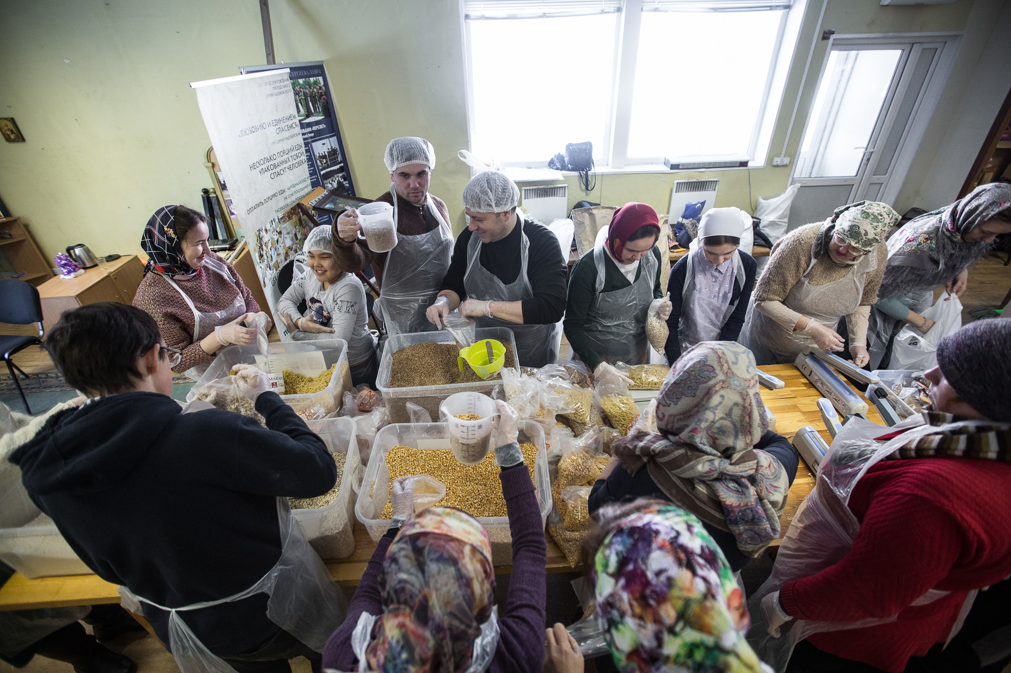 Кашу не варили и не ели. Ее только распределяют по пакетам, затем грузят в машину и развозят малоимущим семьям Сергиева Посада. Там дети помогают взрослым. Дети улыбаются, но не все. Некоторые не могут открыть глаза, некоторые не слышат, не видят. Это дети из ФГБУ «Сергиево-Посадский дом-интернат слепоглухих для детей и молодых инвалидов». Те, кто не понимают значения слова «семья» - поддерживают ее. Те, кто были лишены заботы родных — заботятся о чужих.