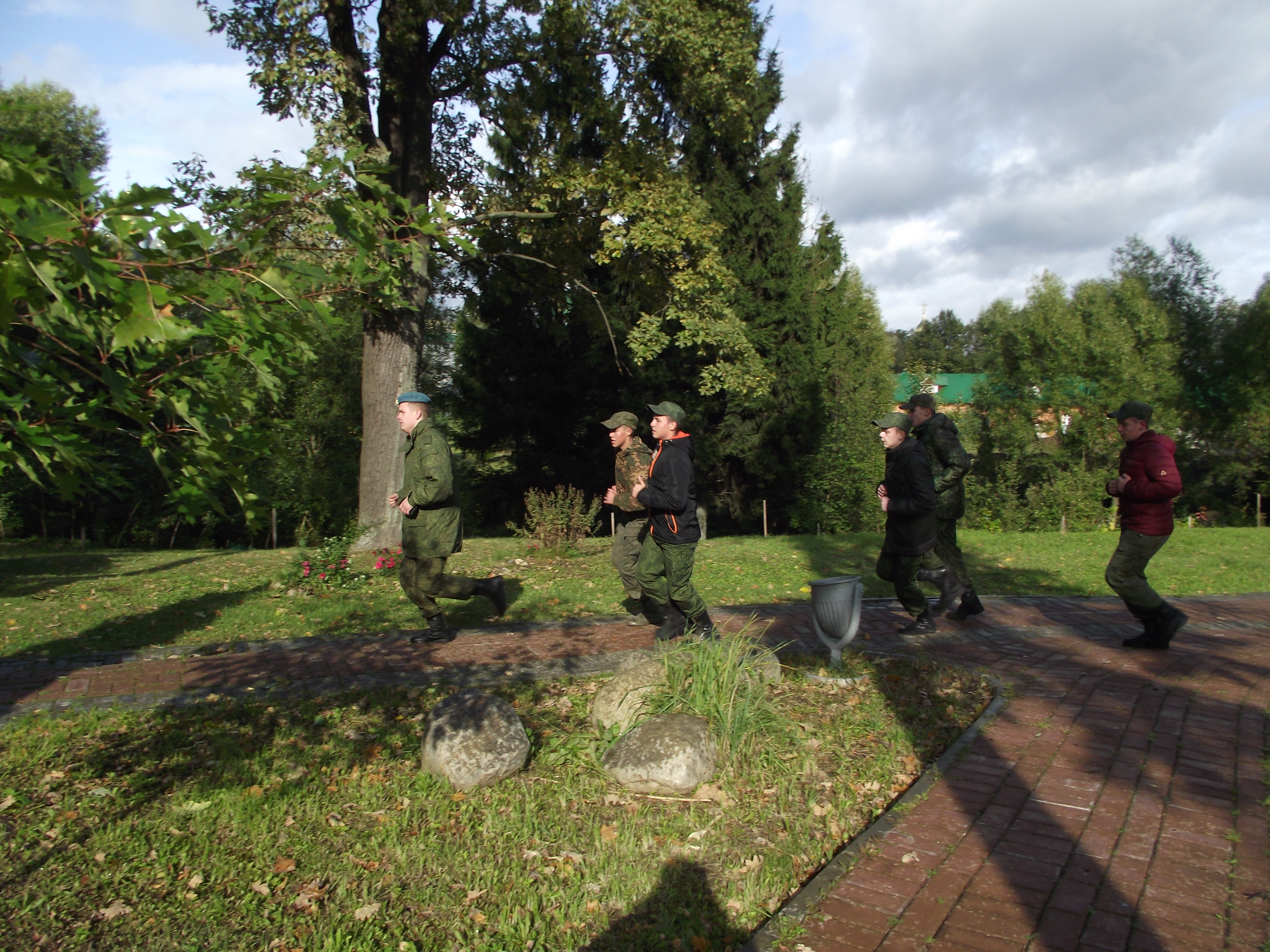 Затем курсантов 1-го взвода разбили на команды, командиры приступили к проработке маршрута, организации ночлега, подбору снаряжения, продуктовой раскладке. Остальные курсанты 1-го взвода и 2-й взвод отправились в Пафнутьев сад, где занимались комплексной физподготовкой, бегали, приседали, тренировались на брусьях и турнике, в том числе на опережение. Резервный взвод занимался строевой подготовкой.