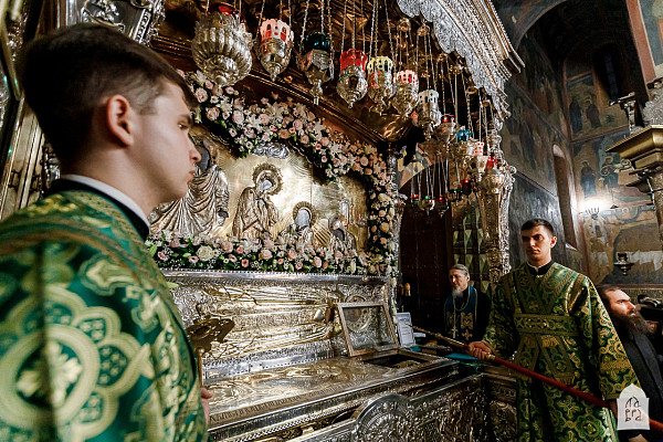 За богослужением молились заместитель председателя Синодального отдела по монастырям и монашеству, настоятельница Зачатьевского ставропигиального женского монастыря игумения Иулиания (Каледа), настоятельницы ряда женских монастырей Русской Православной Церкви, прибывшие в Лавру на престольный праздник.