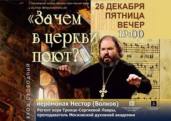 26 декабря в культурно-просветительском центре Свято-Троицкой Сергиевой Лавры «Киновия» состоится встреча с регентом хора обители иеромонахом Нестором (Волковым).