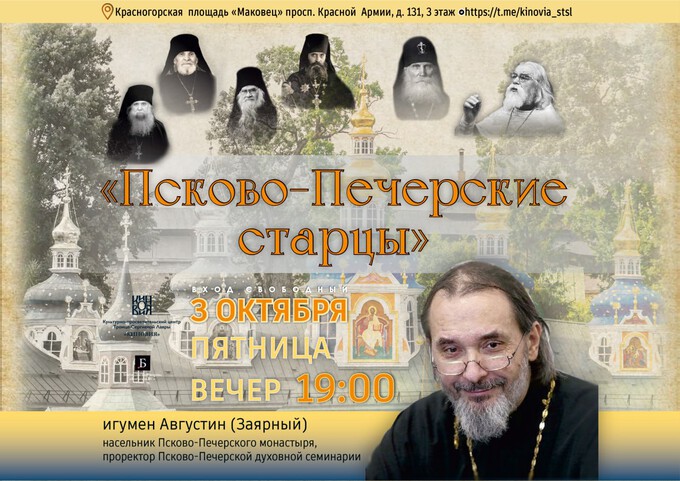 В культурно-просветительском центре Свято-Троицкой Сергиевой Лавры состоится встреча с насельником Свято-Успенского Псково-Печерского монастыря, проректором Псково-Печерской духовной семинарии игуменом Августином (Заярным).