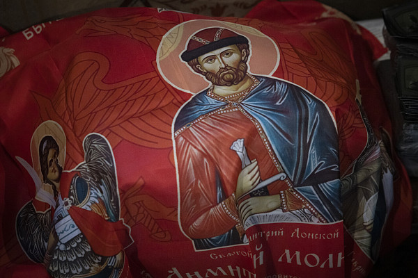Знамена и шевроны с изображениями Спасителя и святого благоверного великого князя Димитрия Донского были подготовлены участниками общественной группы «Помощь нашим» и переданы в Лавру для их последующего освящения.