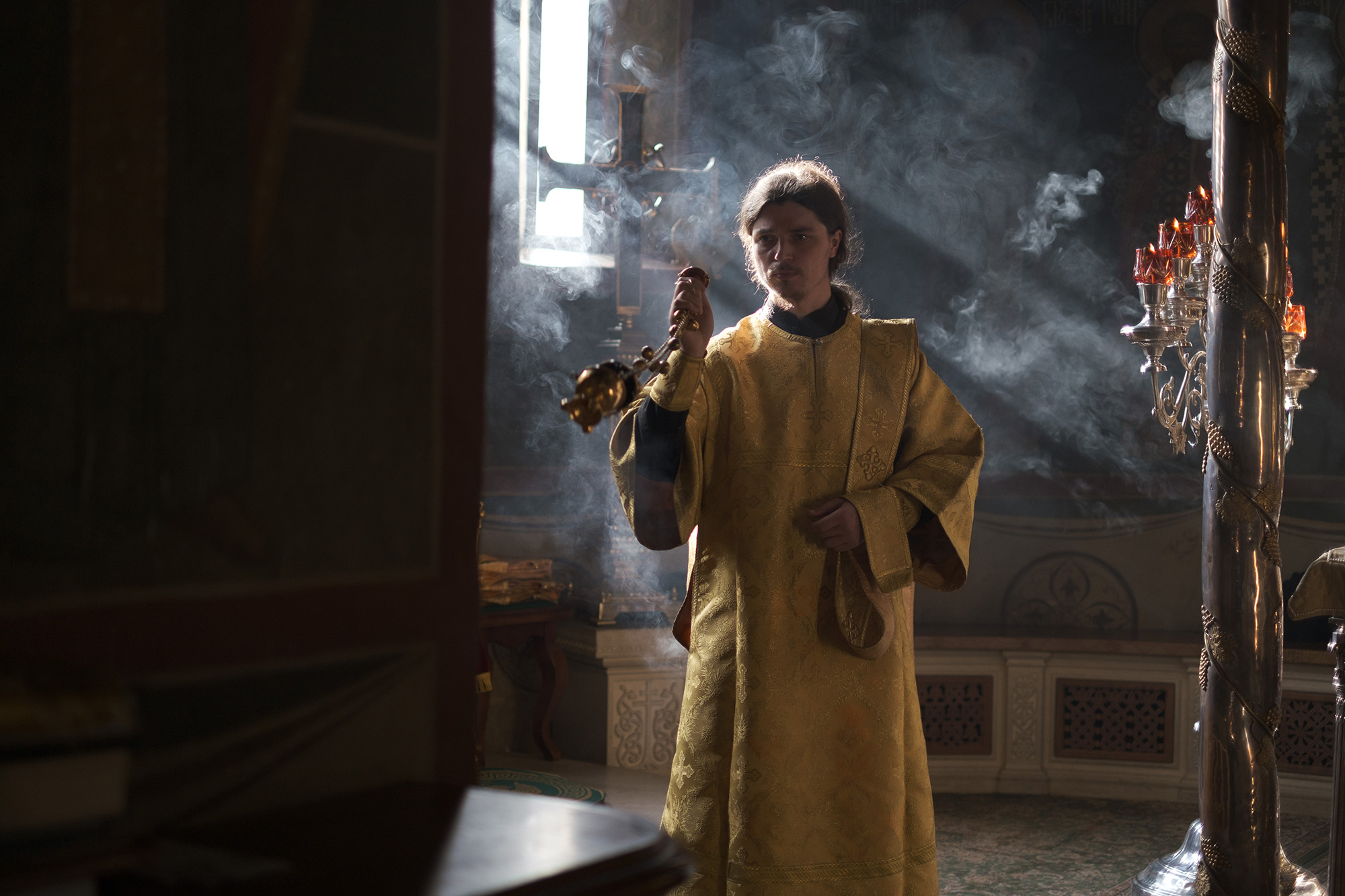 На вечернем богослужении в Успенском соборе пела братия Лавры, на правом клиросе руководил иеродиакон Михей (Соррэ), на левом клиросе — игумен Силуан (Баранов).
