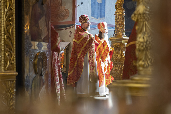 Позднюю Литургию в Успенском соборе Лавре возглавил архимандрит Агафодор (Маркевич). За богослужением пел хор под управлением диакона Александра Левенцова.