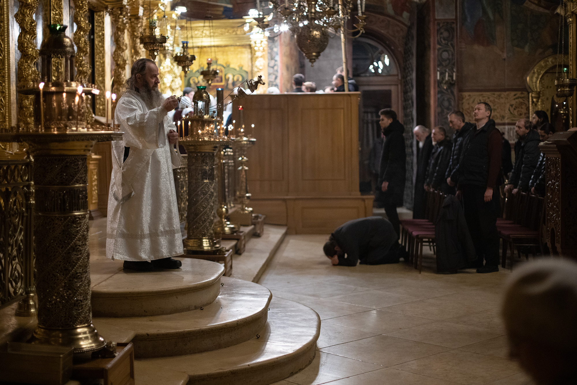 В Троицком соборе Божественную литургию возглавил председатель Синодального отдела по монастырям и монашеству архиепископ Каширский Феогност. В проповеди архиерей провел параллель между древом жизни, которое дано было Адаму и Еве в раю, от которого после грехопадения их изгнали, чтобы они не могли жить вечно (Быт. 3:22), и новым древом жизни – Крестом Христовым: