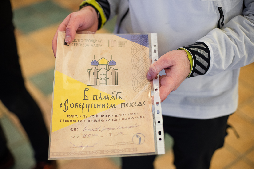 В субботу 28 декабря в обитель преподобного Сергия прибыли путешественники, полностью прошедшие тропу. Григорий Степанов и Дмитрий Беляев сделали это пешим шагом за 20 часов 59 минут; Антон Ефимов, Анатолий Смоляк, Алексей Бардаков и Николай Козлов — бегом.