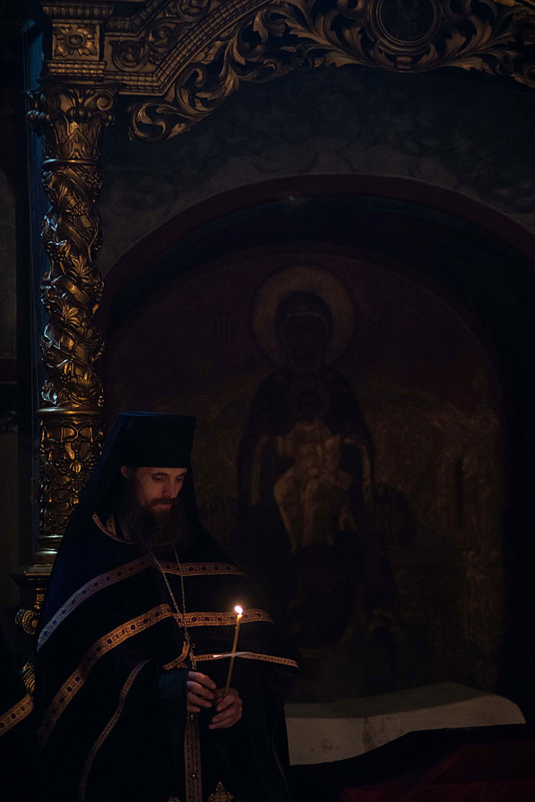 Позднюю Божественную литургию возглавил архимандрит Агафодор (Маркевич). Перед Причастием он произнес проповедь.