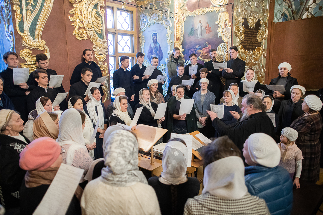 На богослужении пели смешанный хор Лавры под управлением архимандрита Глеба (Кожевникова) и братский хор Лавры под управлением Сергея Сухарева.