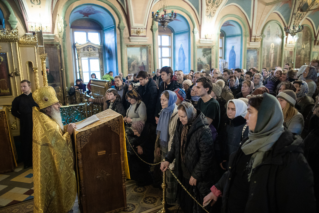 Всенощное бдение в Успенском соборе Лавры совершил епископ Парамон в сослужении братии обители в священном сане.