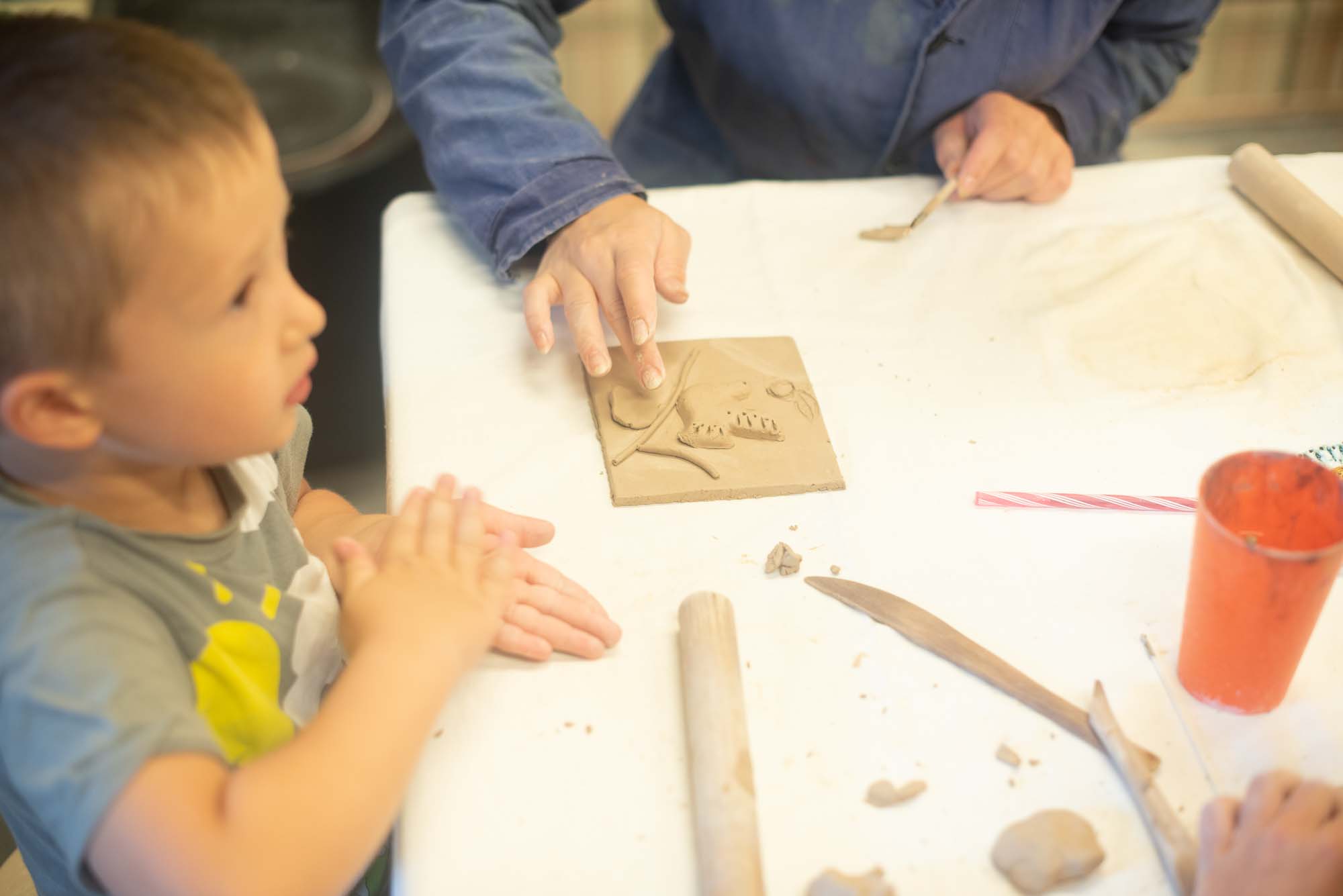 Дети лепили изделия из шамотной глины в технике рельефа и полуобъема. После сушки дети расписали изделия и поместили в печь для обжига. В панно участники воплотили свои задумки.