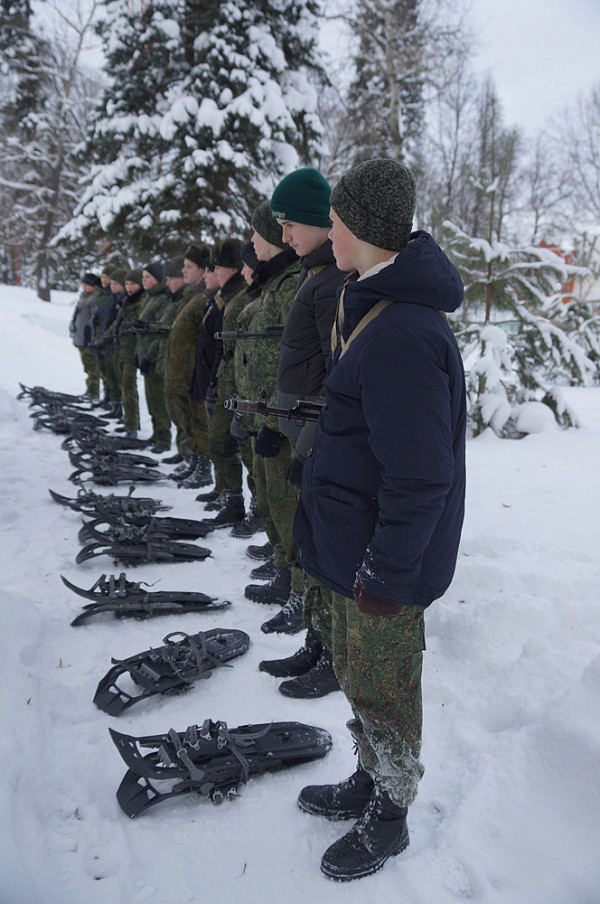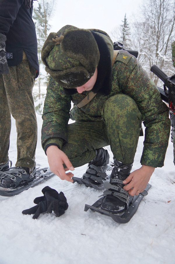 2-й взвод, не участвовавший в зимнем походе, занимался теорией и практикой движения на снегоступах.