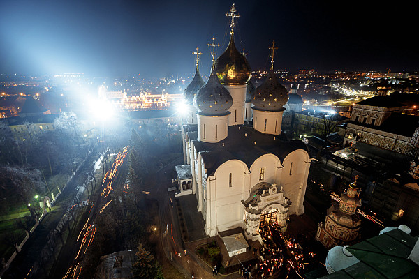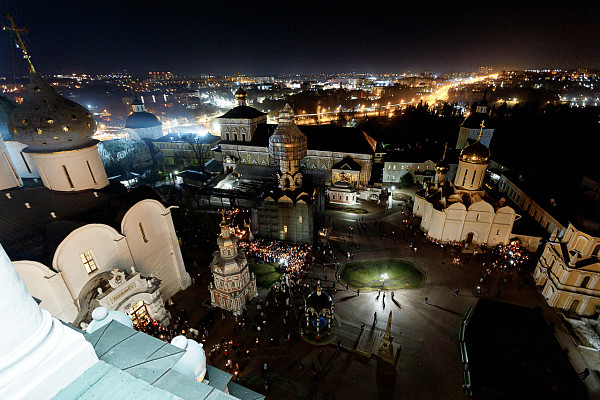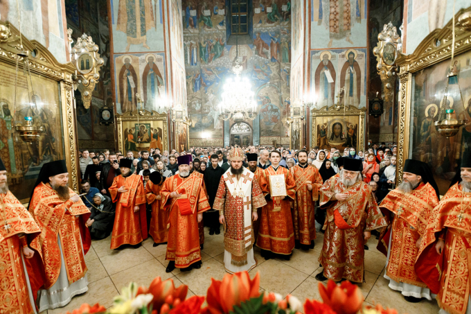 24 апреля во всех храмах Свято-Троицкой Сергиевой Лавры торжественно встретили праздник Воскресения Христова. Богослужение в Успенском соборе совершил наместник Лавры епископ Сергиево-Посадский и Дмитровский Фома.