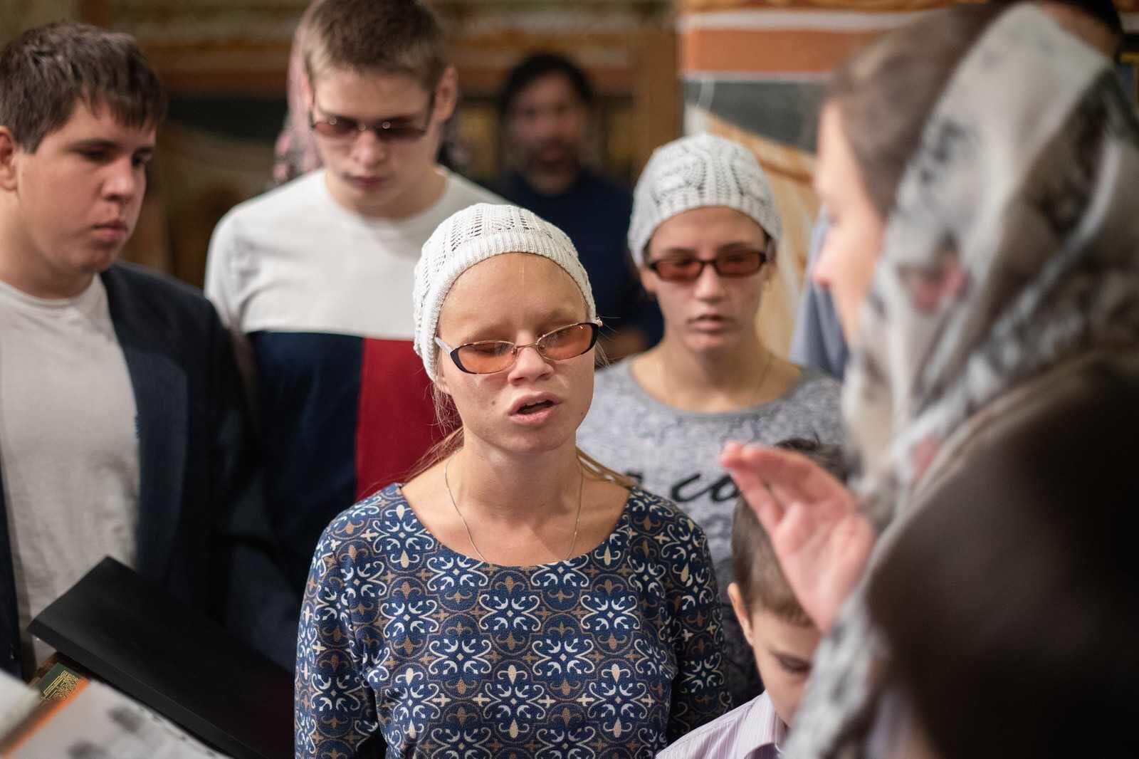 Храм подворья Троице-Сергиевой Лавры на территории Сергиево-Посадского дома-интерната для слепоглухих детей освящен в честь Явления Пресвятой Богородицы преподобному Сергию Радонежскому. Такое посвящение предложил знаменитый регент Лавры архимандрит Матфей (Мормыль). В основном прихожане, пономари и певчие храма — это сами воспитанники детского дома. Слепые и глухонемые дети, начиная с 6–7 лет, с удовольствием участвуют в богослужениях. Совместно с клиром храма и специалистами детского дома созданы адаптированные богослужебные тексты всенощного бдения и Божественной литургии, специальные объемные пособия для слепых и пособия для детей с множественными нарушениями развития.