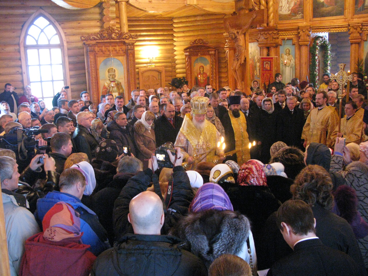 «Дорогие отцы, братья и сестры! — обратился Предстоятель к молящимся. — Храмы строятся не потому, что кому-то просто захотелось их построить... Храмы строятся потому, что в них есть потребность... Святые отцы, толкователи библейских текстов, единодушно утверждают, что под словом “земля” следует подразумевать весь тварный космос, всю Вселенную. Значит, Господь поставил перед нами цель — наполнять и планету нашу, и всю Вселенную и обладать ею. Поэтому стремление человека подняться к звездам — не блажь, не фантазия, не мода, а некая программа, заложенная Богом в человеческую природу... Вот почему так важен храм в Звездном городке — чтобы каждый, кто отправляется в космос, понимал, что это не просто работа, а нечто особенное. Так что же такое храм? Мы знаем, что у ученых есть своя картина мира. Рисуя эту картину, они используют такие понятия, как время, пространство, масса, энергия. Храм тоже есть образ мира, но здесь иные понятия — смысл и предназначение. И если научную картину мира соединить с той, которая дается человеку через общение с Богом, тогда и устрояется гармония жизни, тот взгляд на мир, на человека, на космос, который является истинным. А для того, чтобы не было никаких перекосов в сознании современных людей, работающих на переднем крае научных достижений, так важно, чтобы у них была возможность прийти в храм и подумать о смысле и предназначении — и собственной жизни, и своей работы, и Вселенной. Пусть в этом храме всегда совершается горячая молитва, особенно за тех, кто в космосе, за их близких и родных, которые остаются на земле и для которых каждый день — это время особых переживаний. Эта духовная поддержка нужна и тем, кто летает, и тем, кто остается на земле, а также их товарищам, коллегам, создателям этой сложнейшей техники».