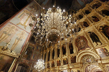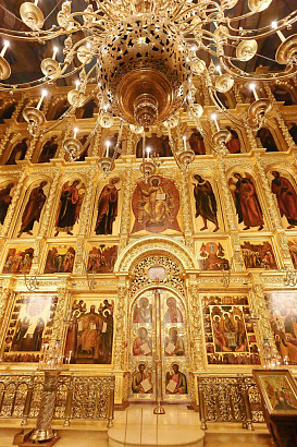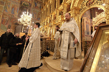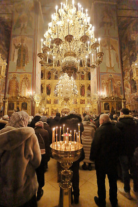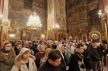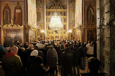 Ночная Литургия и Великое освящение воды в праздник Крещения Господня в Успенском соборе Лавры. Фото:  А. Севостьянов. 19 января 2019 г.