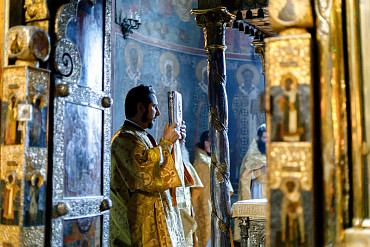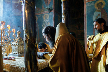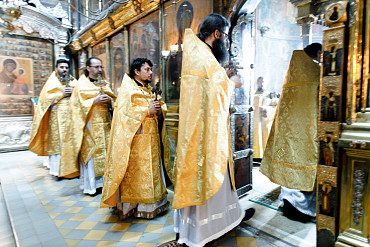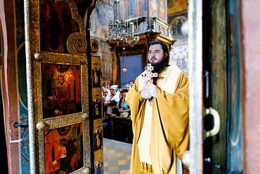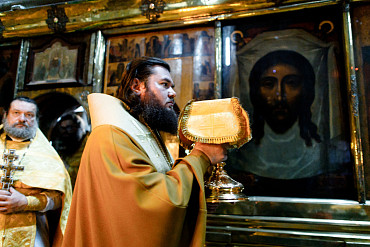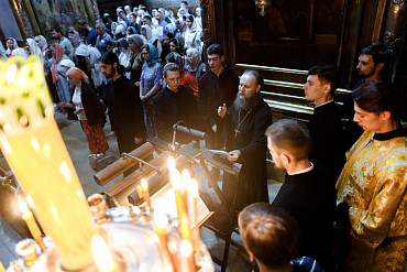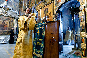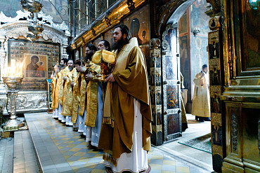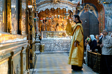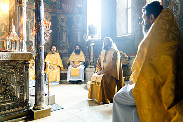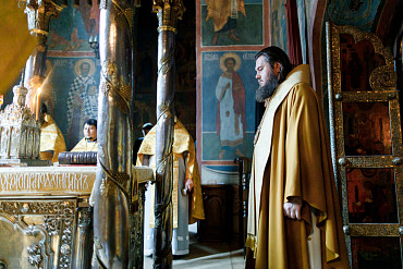 8 июля, в праздник благоверных Петра и Февронии Муромских, епископ Сергиево-Посадский и Дмитровский Фома совершил Божественную литургию в Троицком соборе Лавры.
