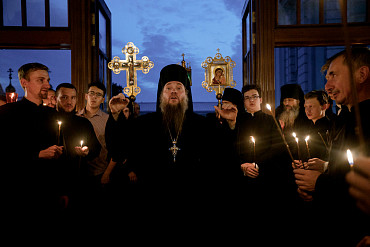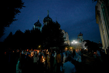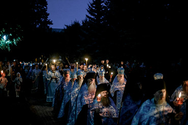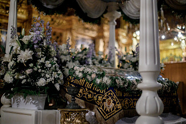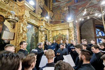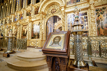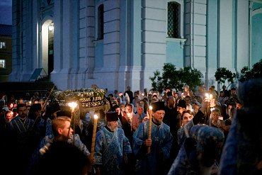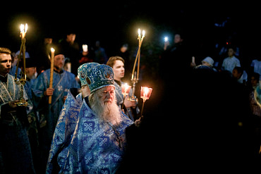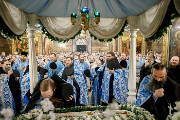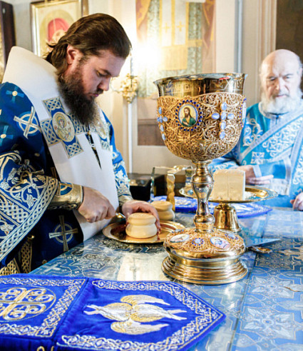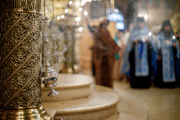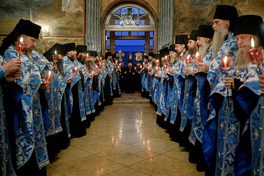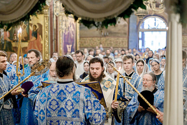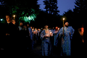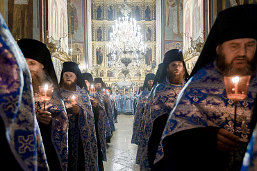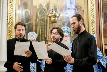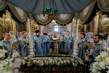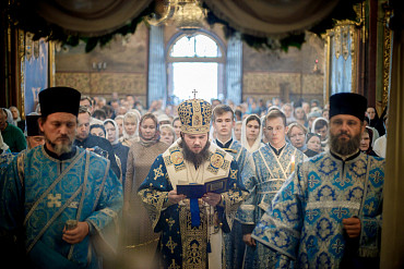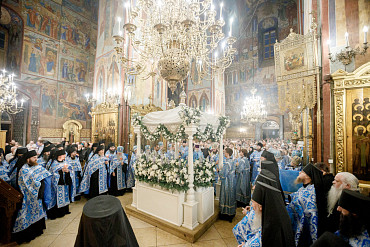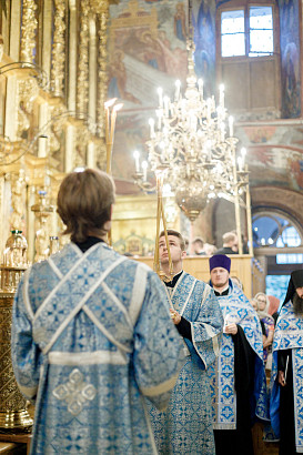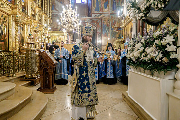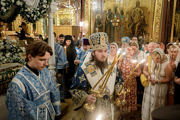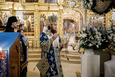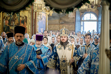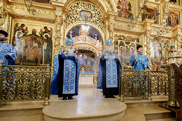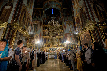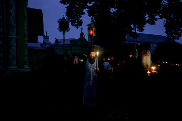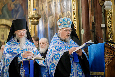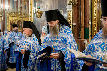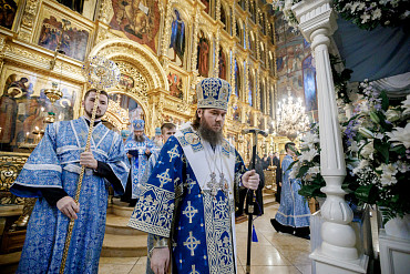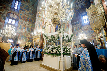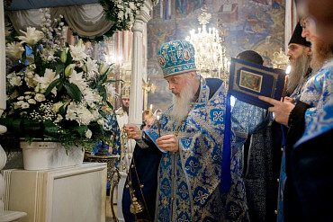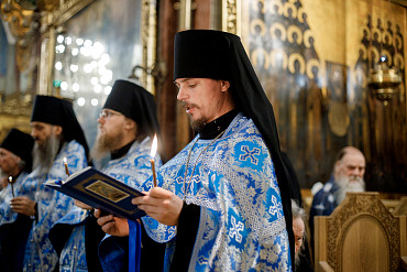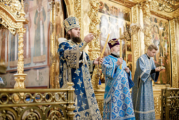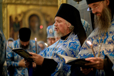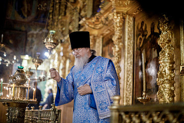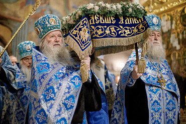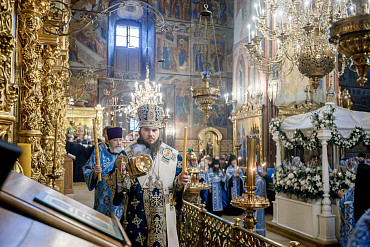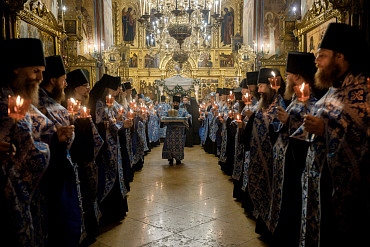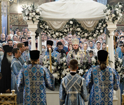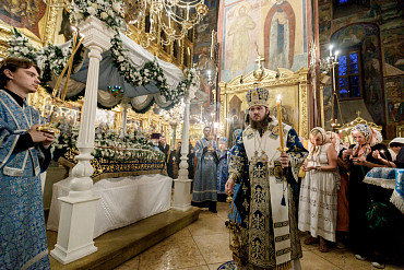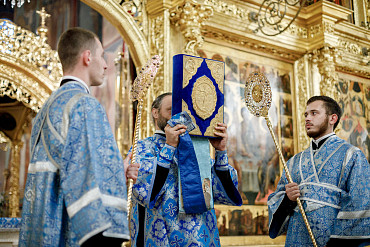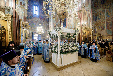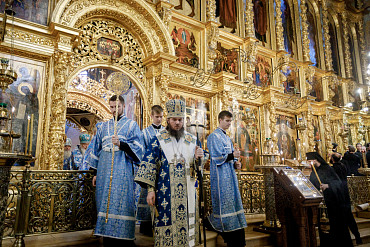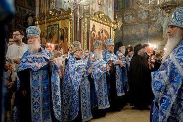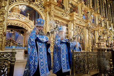 28 августа епископ Сергиево-Посадский и Дмитровский Фома совершил чин Погребения плащаницы Божией Матери в Успенском соборе Лавры.