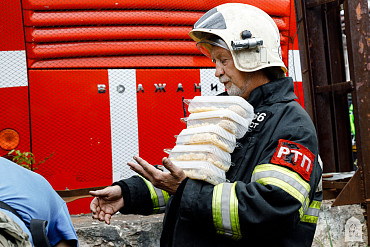 Питание для спасателей, работающих в зоне взрыва в Сергиевом Посаде
