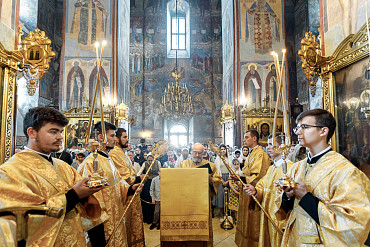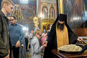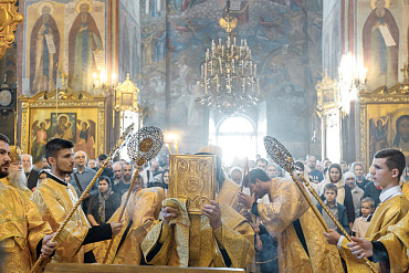 12 и 13 августа в Лавре прошли воскресные богослужения, на которых молитвенно почтили Крест Господень. Всенощное бдение и Литургию в Успенском соборе Лавры совершил епископ Фома.