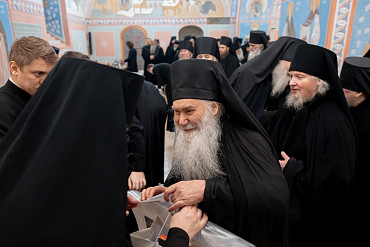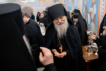 7 января, в день праздника Рождества Христова, наместник Лавры епископ Сергиево-Посадский и Дмитровский Кирилл встретился с насельниками обители в братской трапезной.